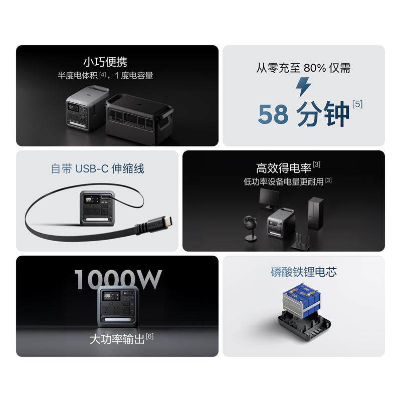 1度电旗舰新品 Mini DJI 1000 移动电源220V快充便携自驾露营车载应急备用储能户外电源 Power 大疆