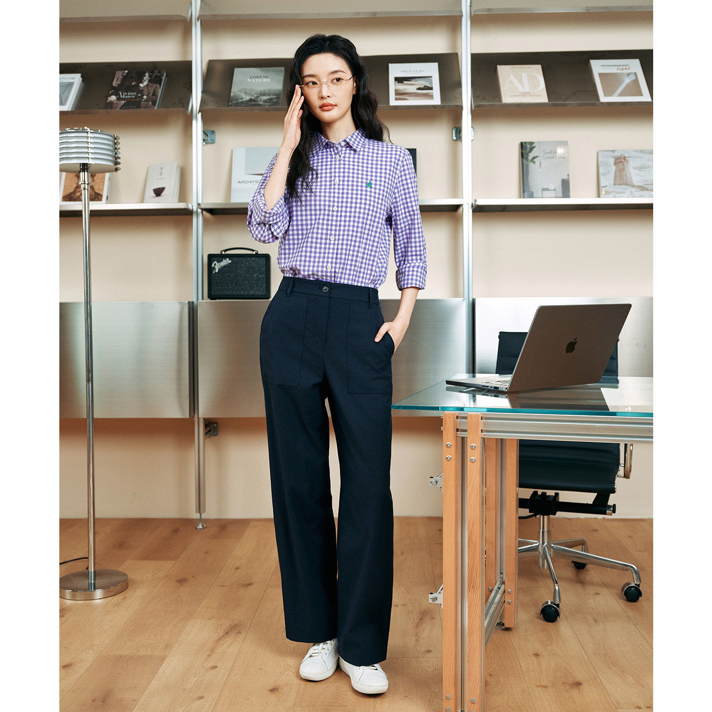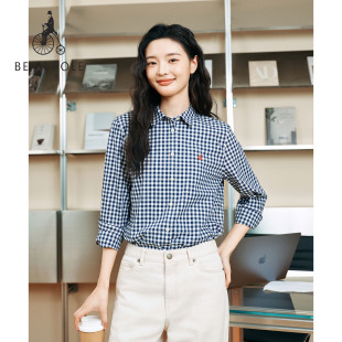 女士方格子纹简约休闲长袖 2026年春季 BEANPOLE滨波 衬衫 新品
