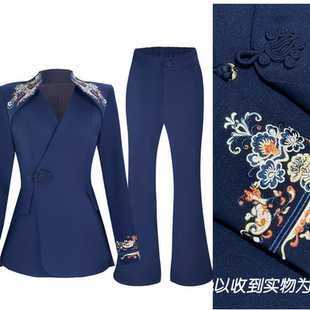 春秋设计感气质 高级感肩部刺绣国风西服套装 25316 春款