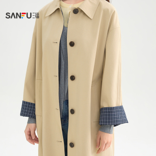 风衣女装 格子内里宽松中长款 516782 春季 三福卡其色外套女2026新款