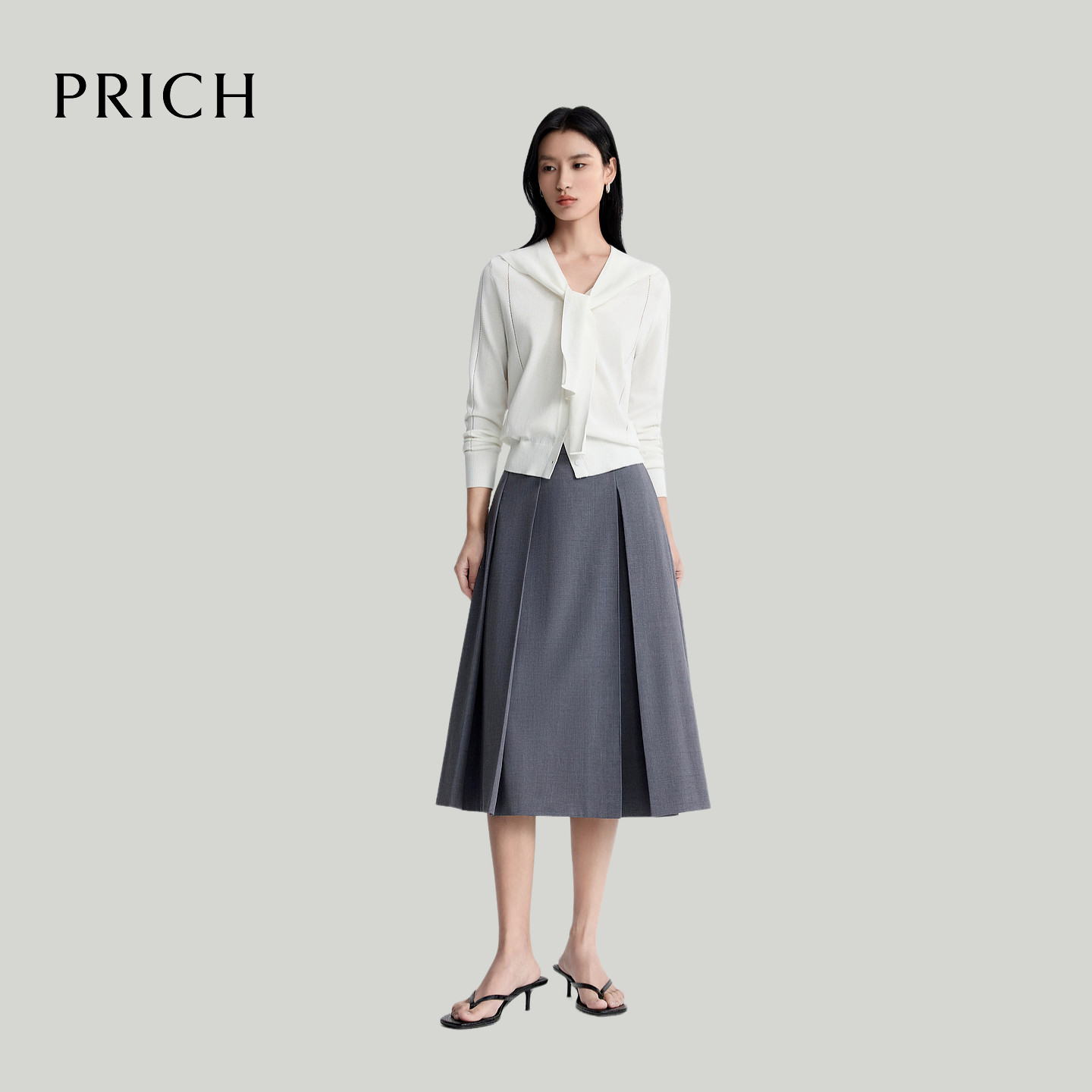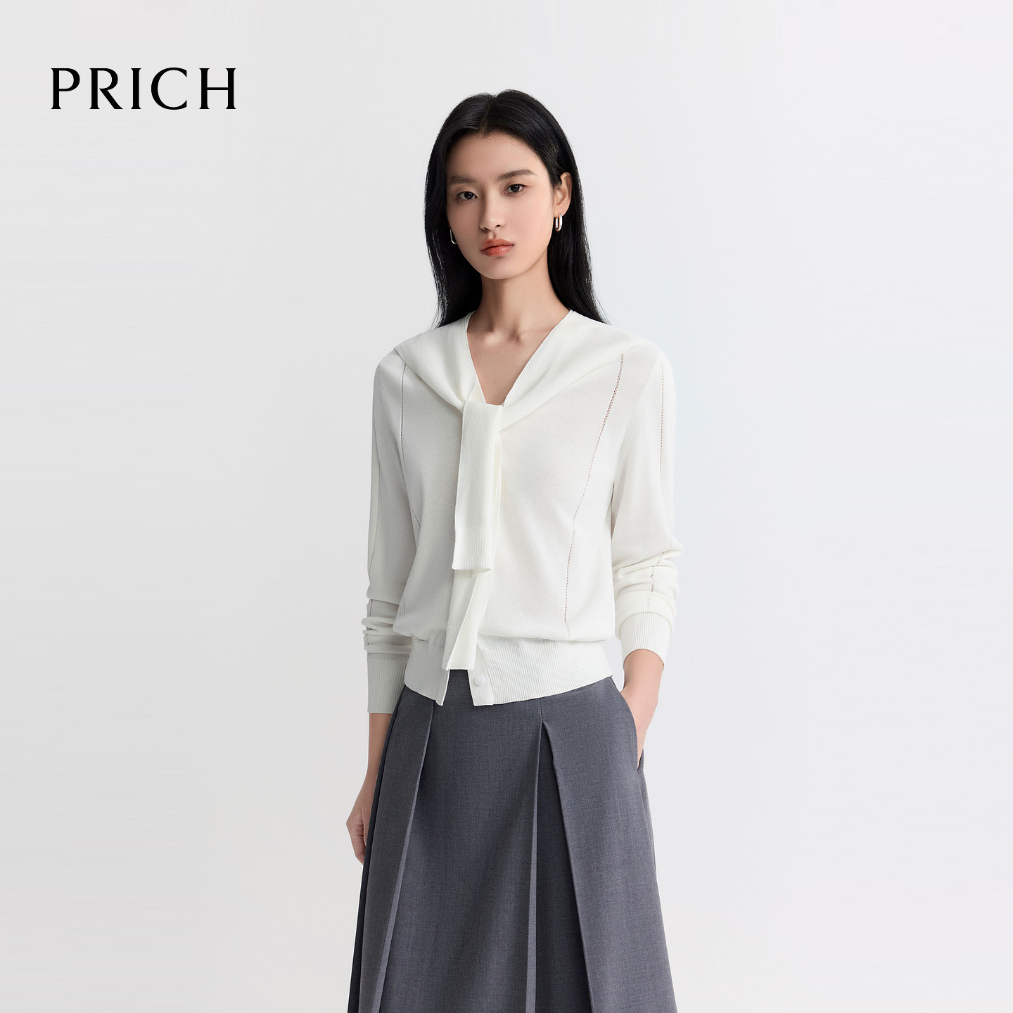 气质休闲通勤上衣女 新款 PRICH简约柔润系披肩V领针织开衫 2026夏季