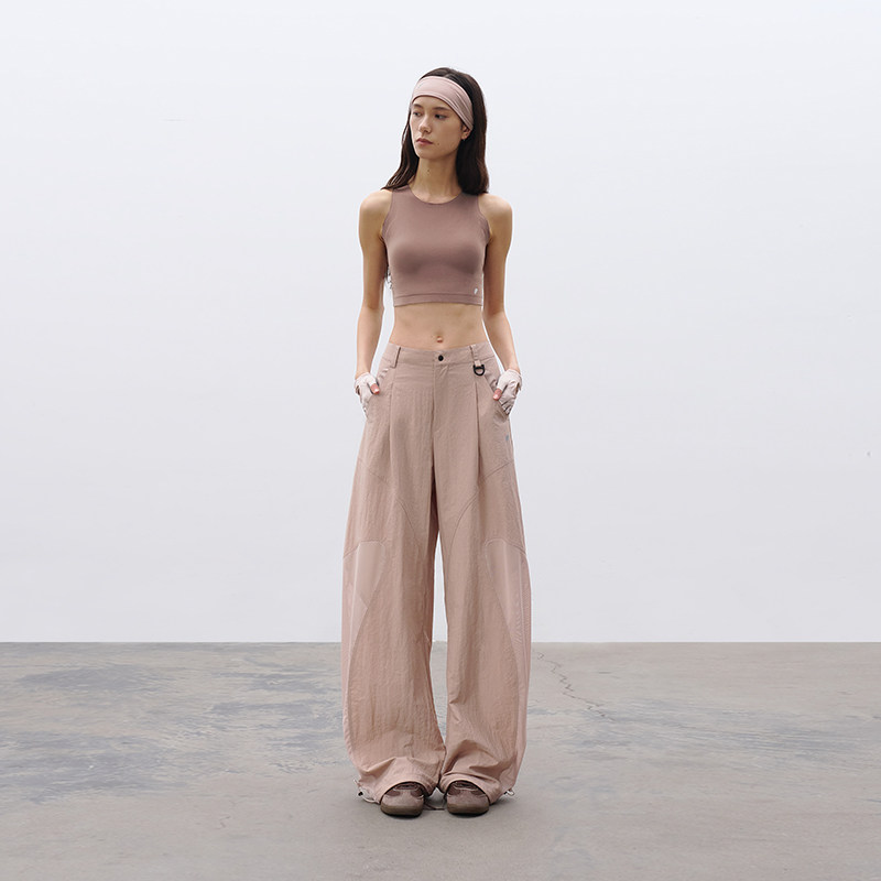 宽松休闲弧线拼接网眼弯刀裤 运动 女减龄显白 2026春季 半圆女装