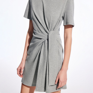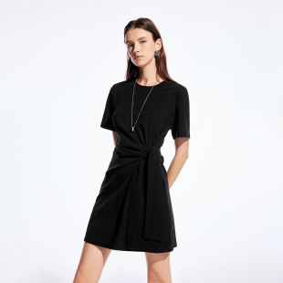 收腰正肩短裙连衣裙女 气质立体扭结纯色裙子短袖 ONLY2026春季 新款