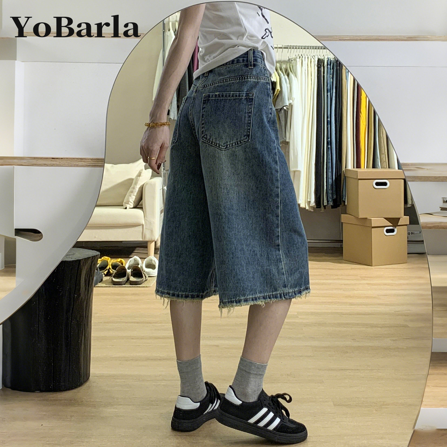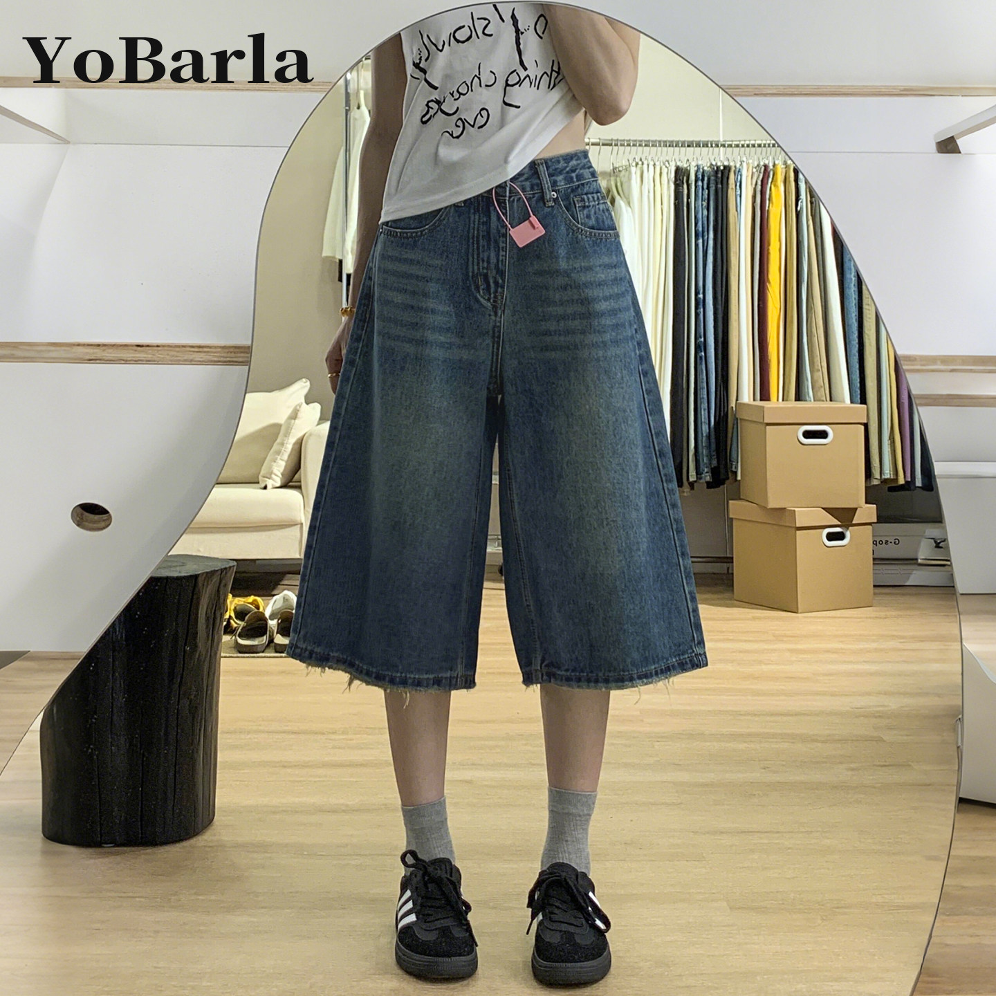 胖mm梨型身材宽松显瘦直筒裤 复古阔腿牛仔七分裤 大码 新款 子 女夏季