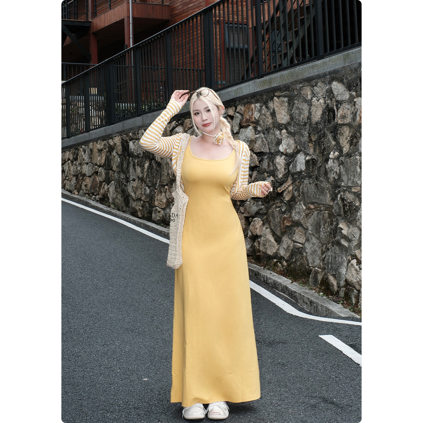 收腰长裙 吊带连衣裙女夏微胖裙子海边度假无袖 糯米子 明媚生命力