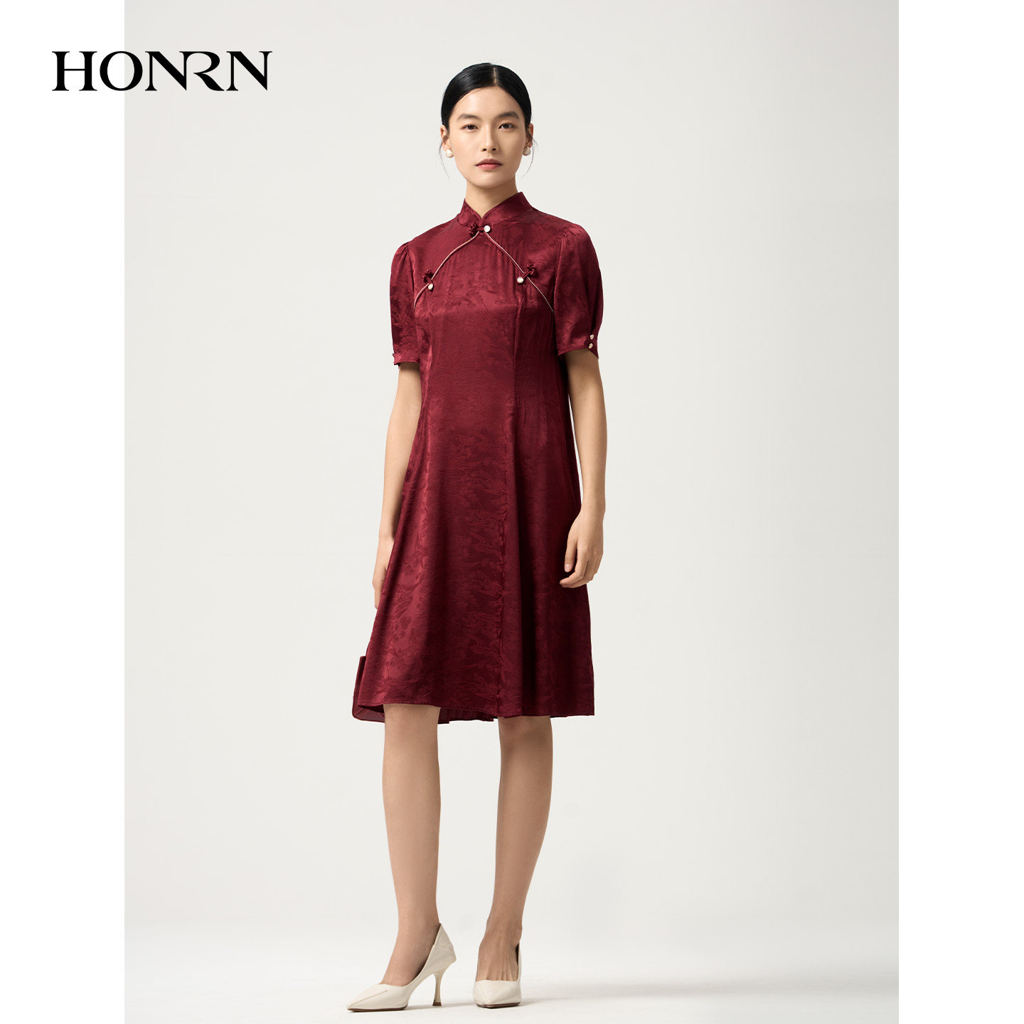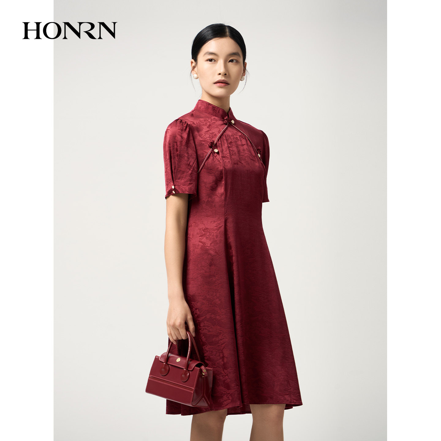 优雅旗袍裙HJ22OL132 连衣裙女夏季 HONRN 红人桑蚕丝混纺新中式