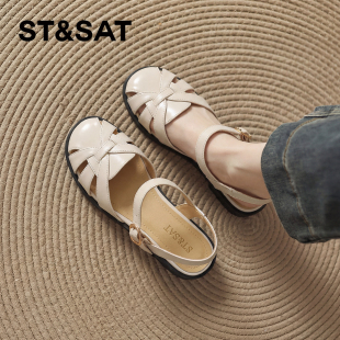 配裙子女鞋 星期六包头罗马凉鞋 平底不累脚猪笼鞋 夏季 黑色 2026新款