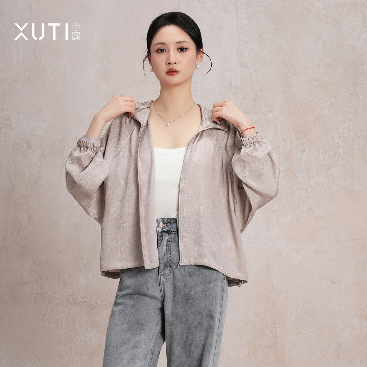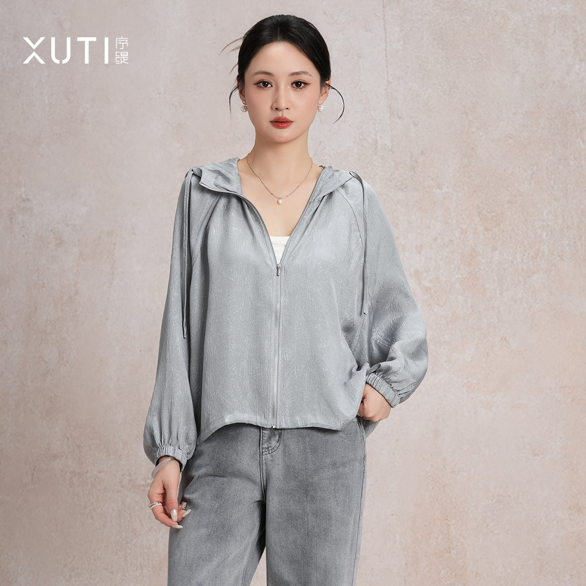 H101 新款 28956 休闲运动连帽上衣女春季 序缇质造100%桑蚕丝新中式