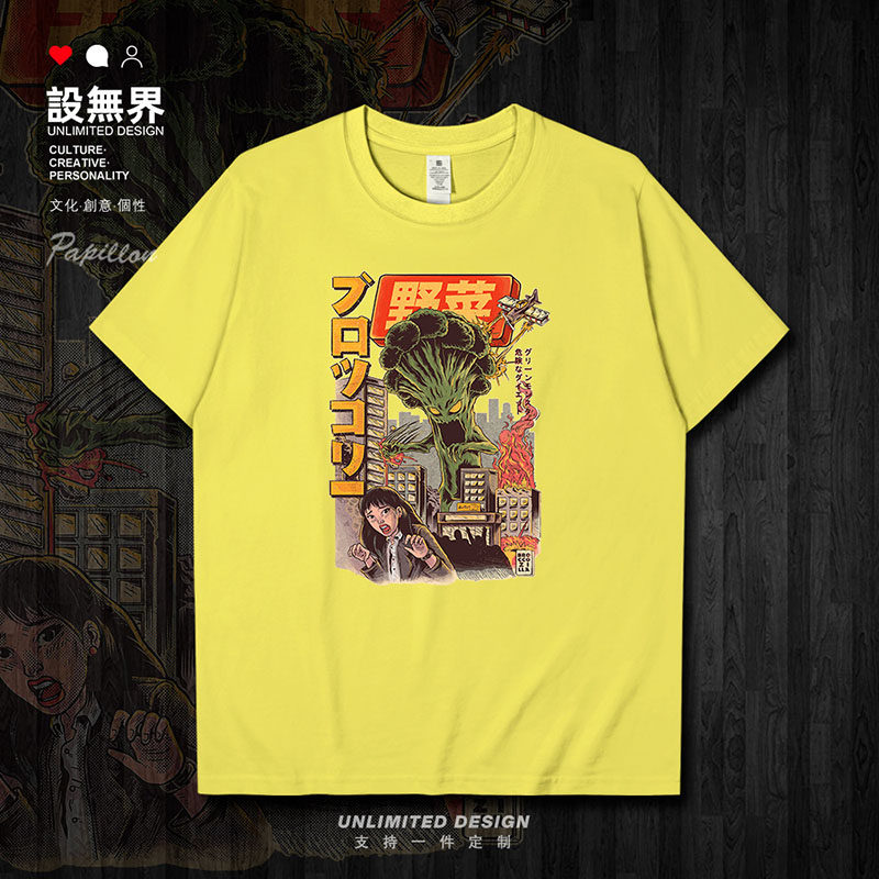 无界 T恤男女纯棉上衣0002设 日系花椰菜怪兽复古潮流插画夏季 短袖