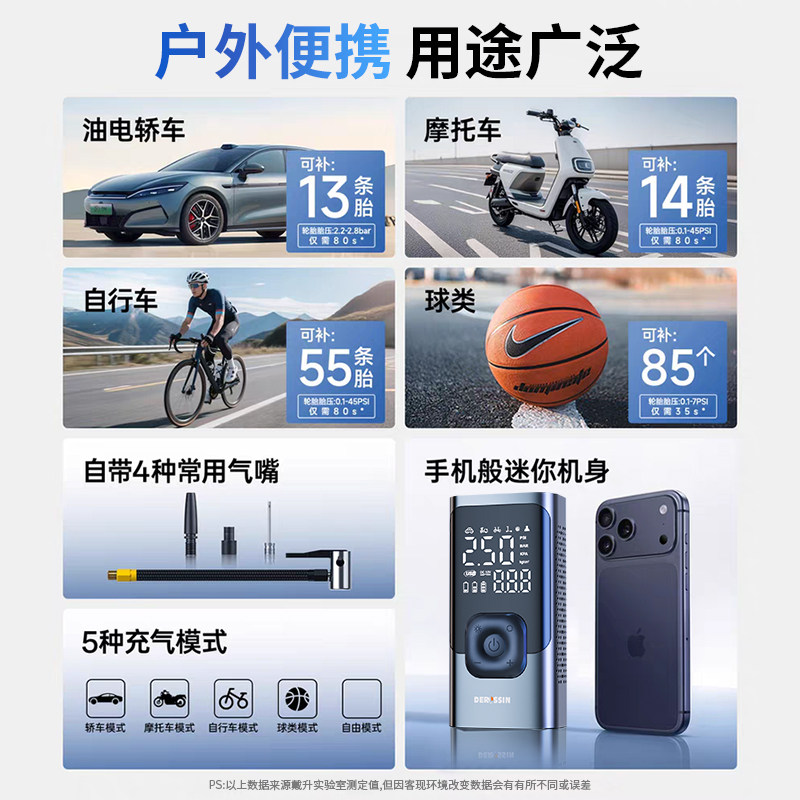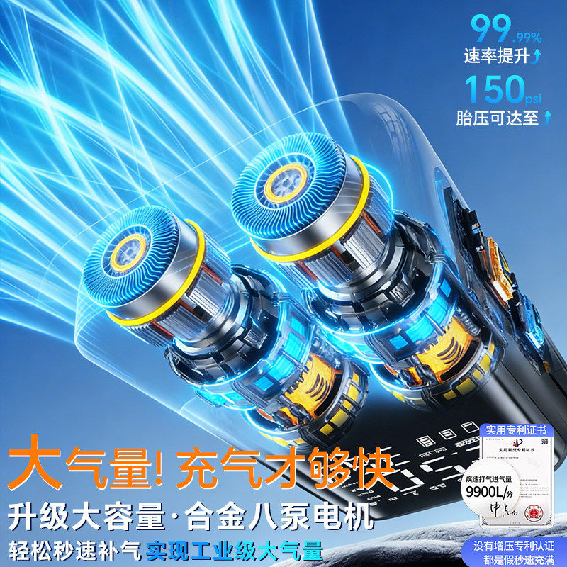 车载汽车充气泵电动打气泵用便携电动车轮胎带测胎压打气筒小轿车