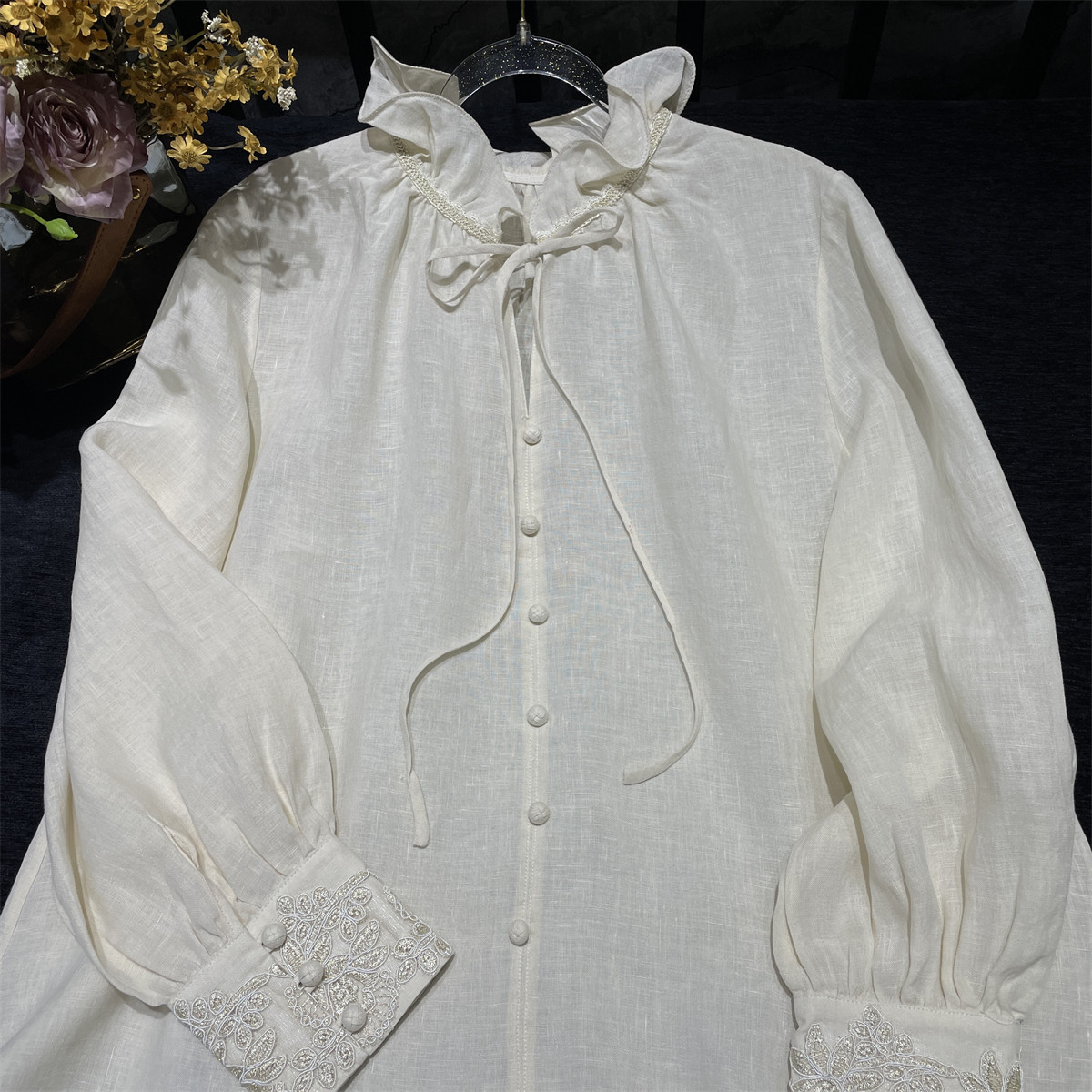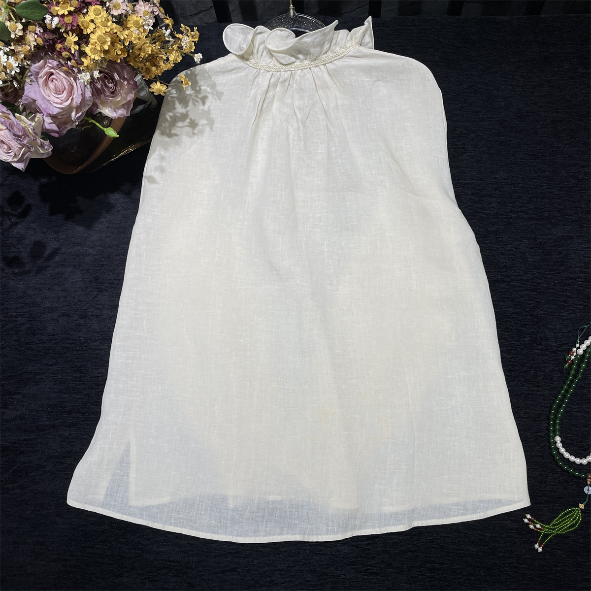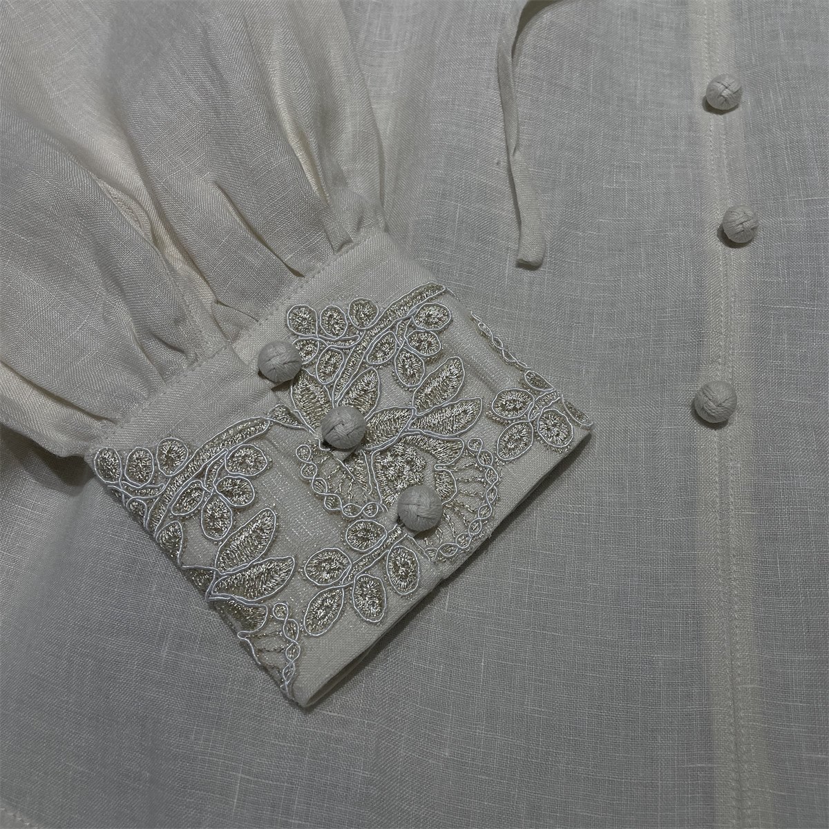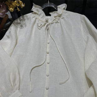 国风木耳花边领口亚麻原色百搭松弛感衬衫 新中式 短上衣 白月光