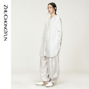 套装 休闲裤 东方感廓形简约色织宽松衬衫 ZHUCHONGYUN2026夏新款