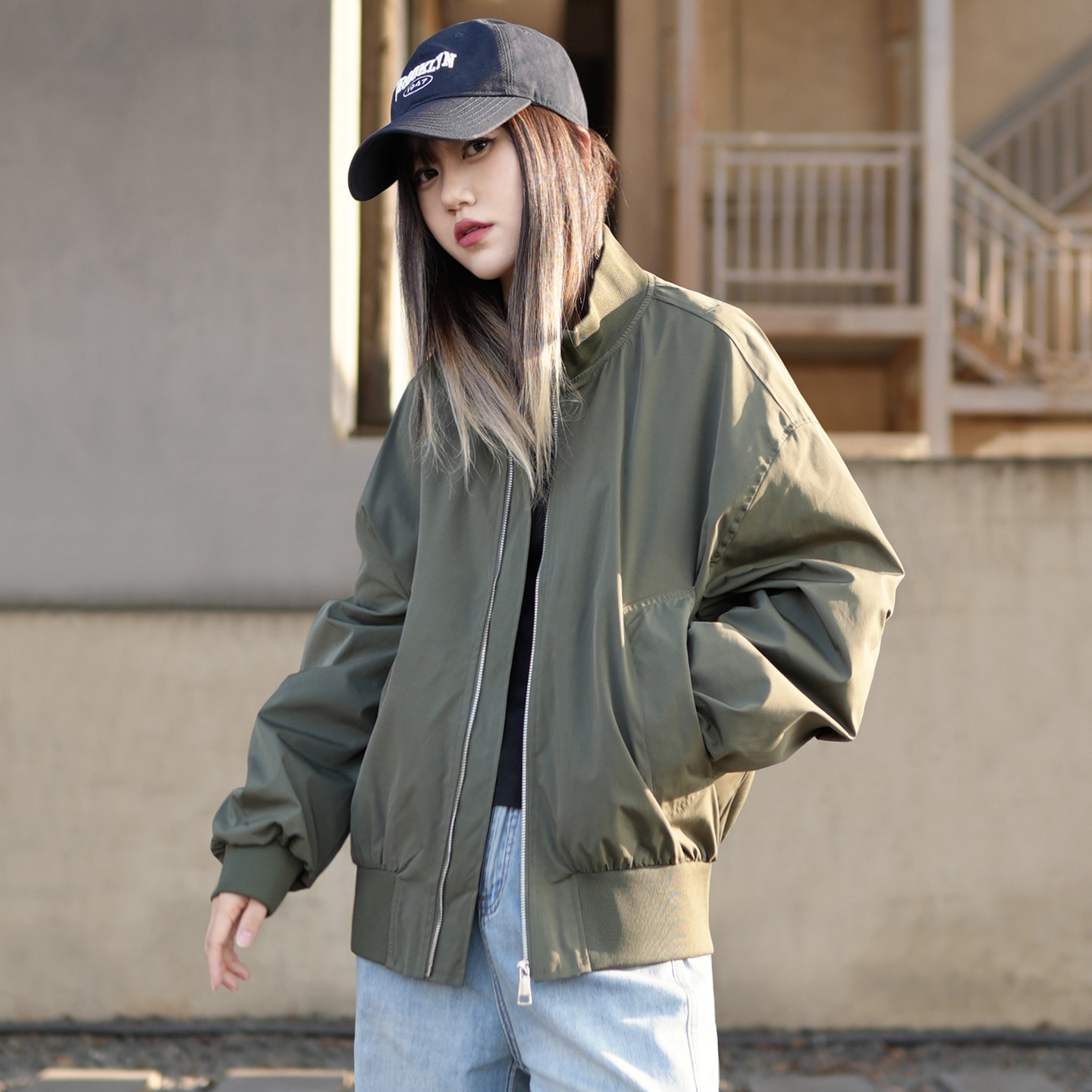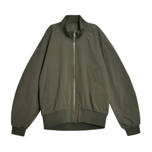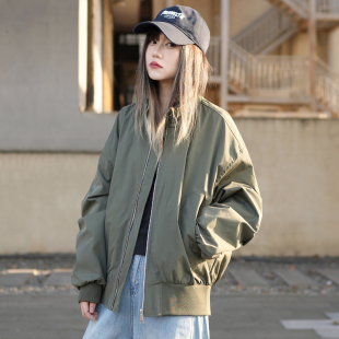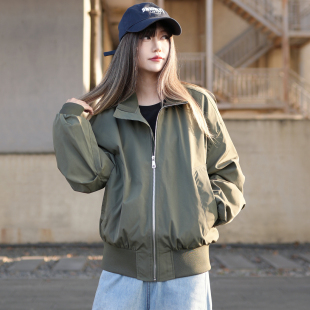 立领外套棒球服中性风酷感穿搭 春季 美式 复古军绿色飞行员夹克女款