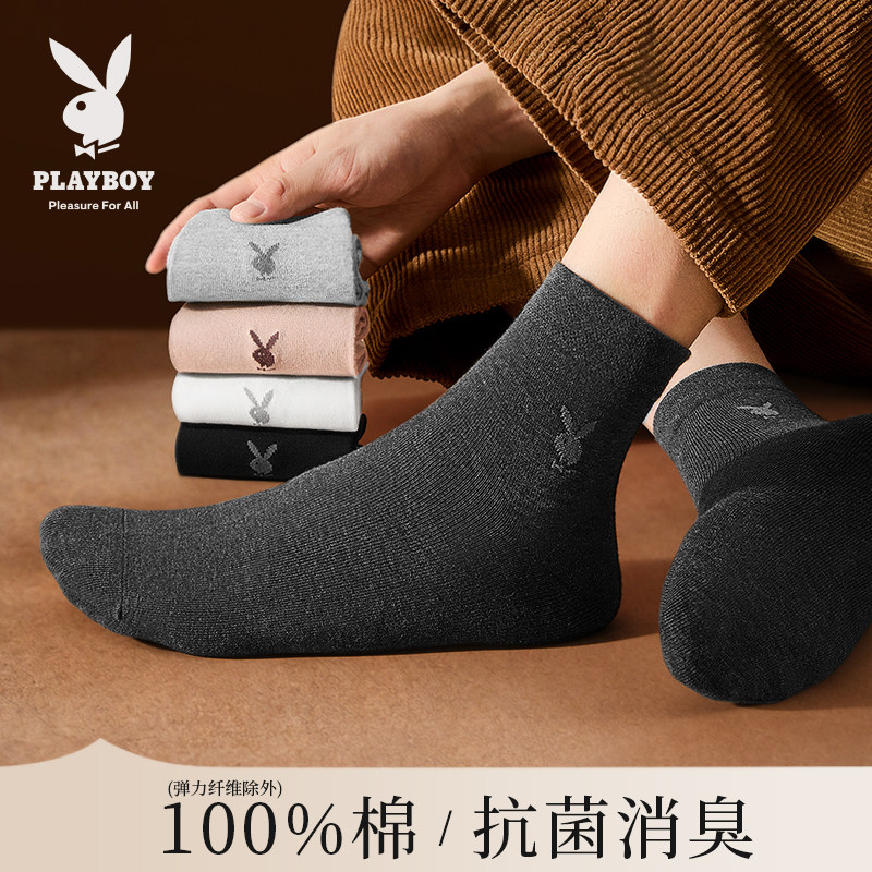 纯棉中筒袜防臭吸汗7a抗菌全棉男袜春夏新款 花花公子男士 袜子男款