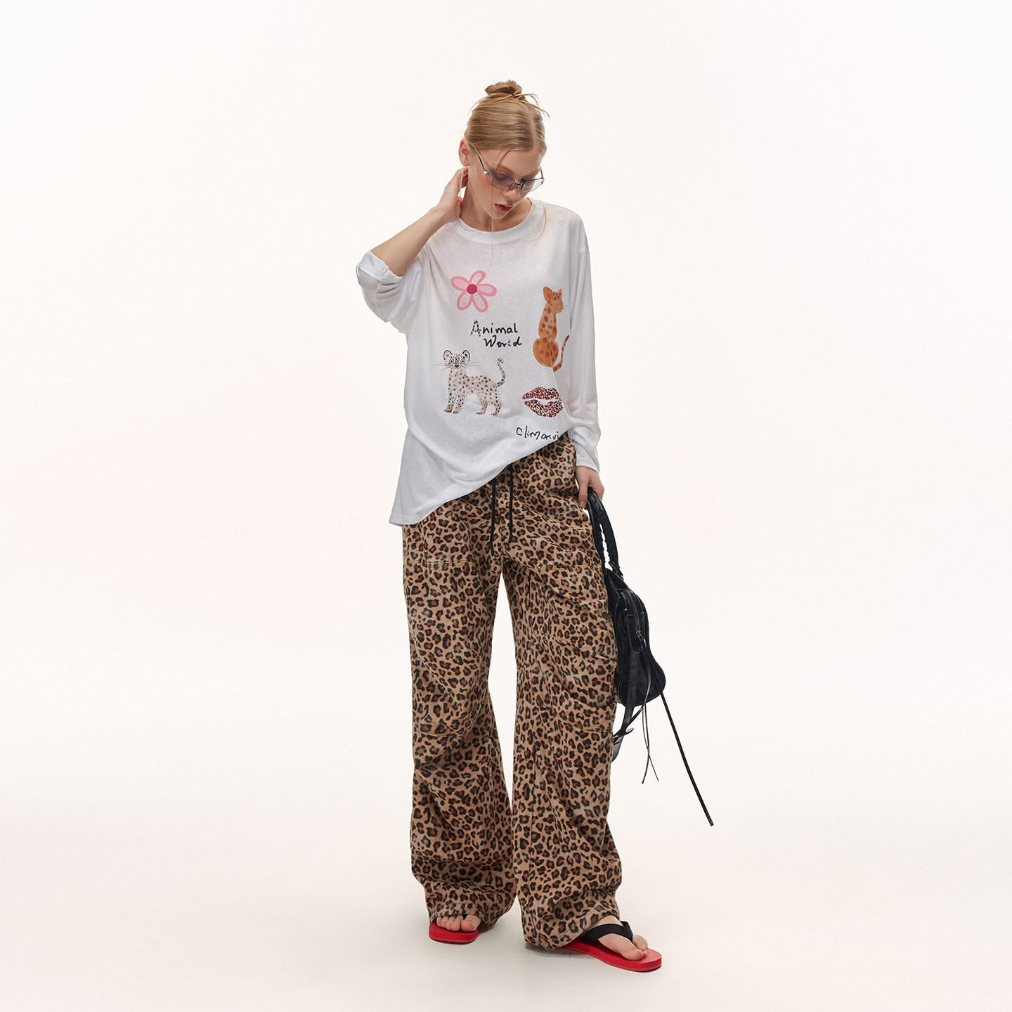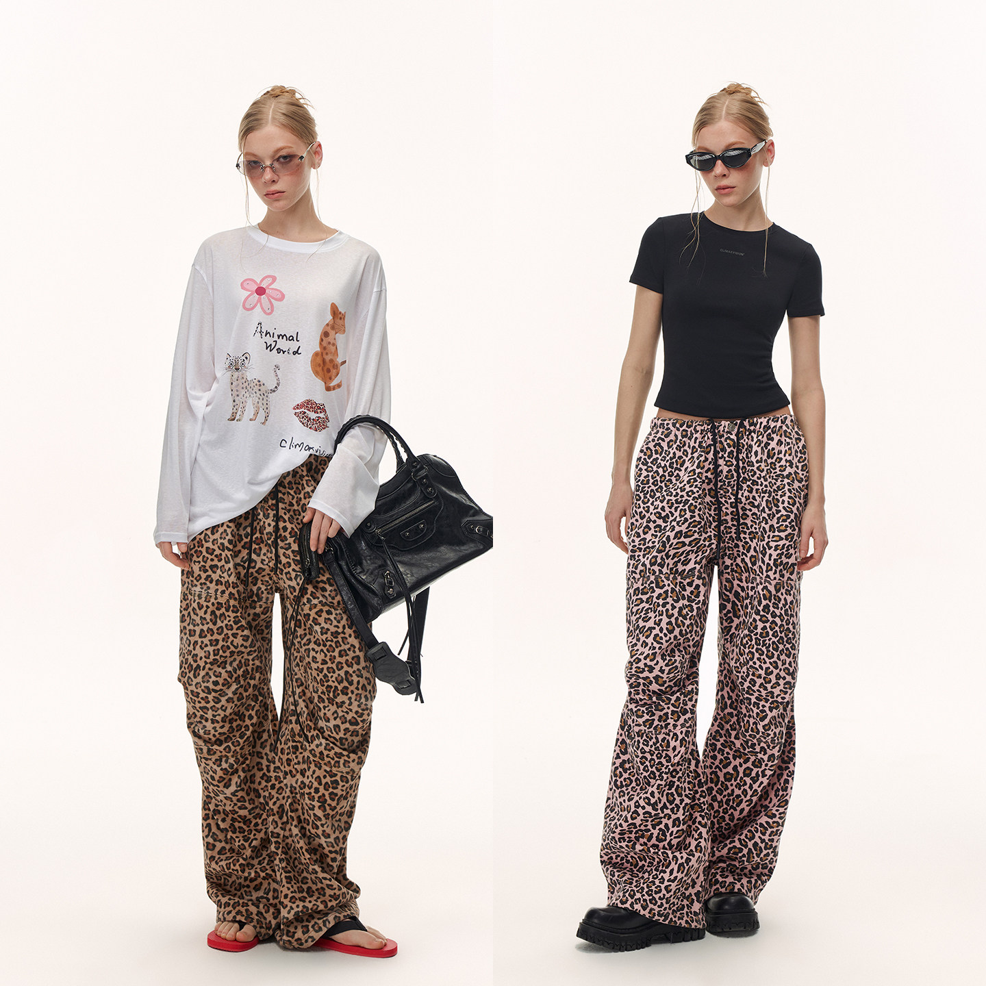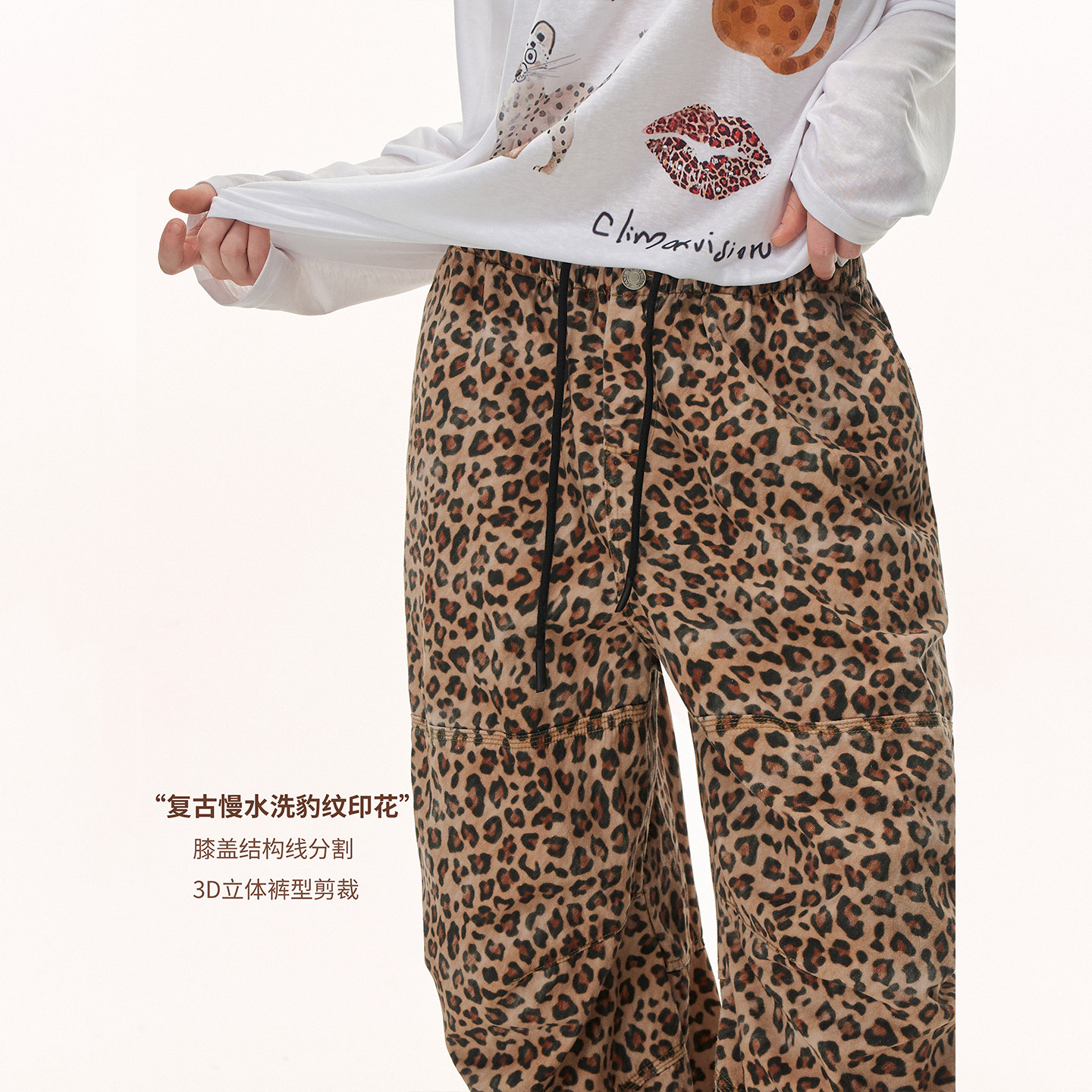 女春夏轻薄阔腿长裤 CLIMAX 牛仔裤 复古轻解构豹纹工装 VISION美式
