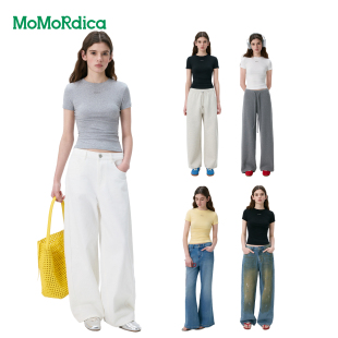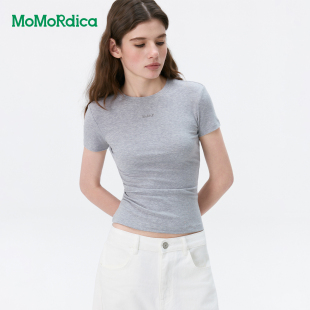 休闲百搭长袖 T恤 套头T恤 正肩短袖 Momordica春夏新女生短款