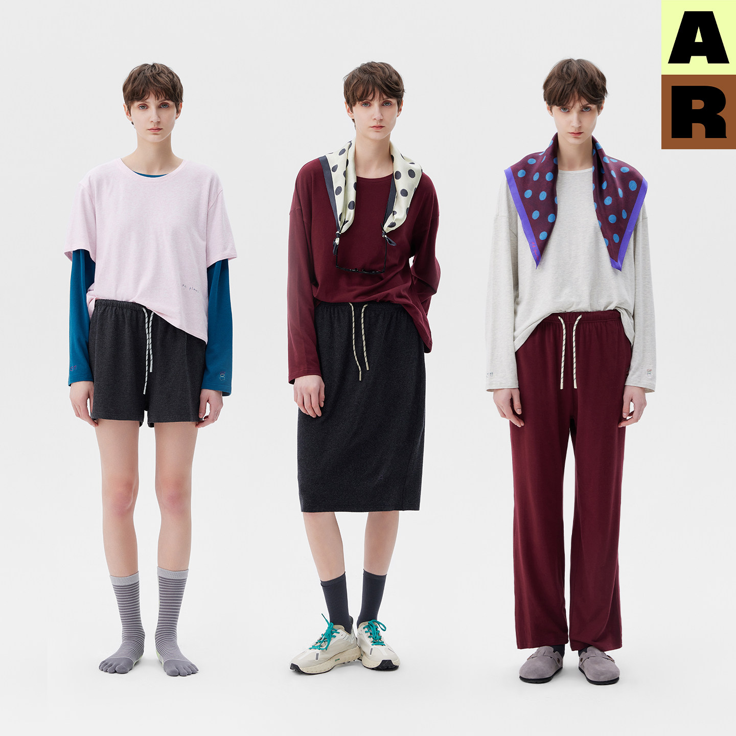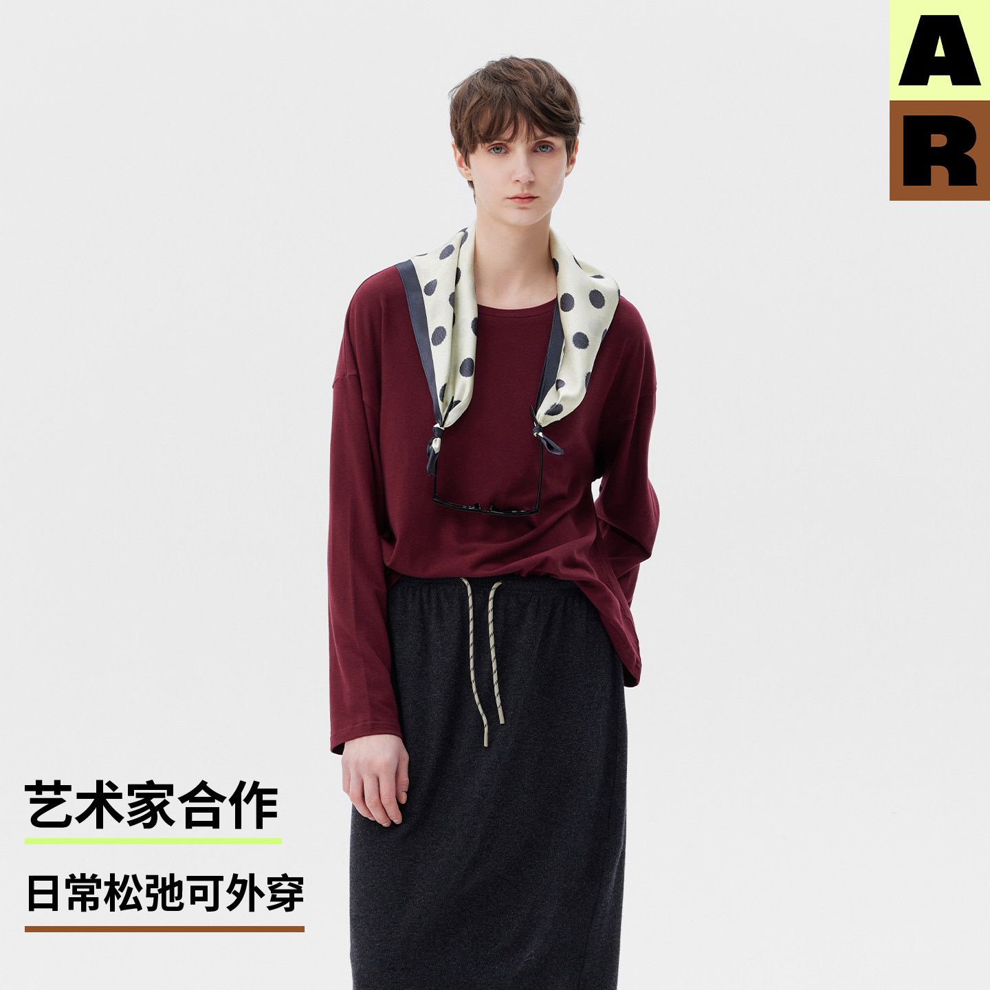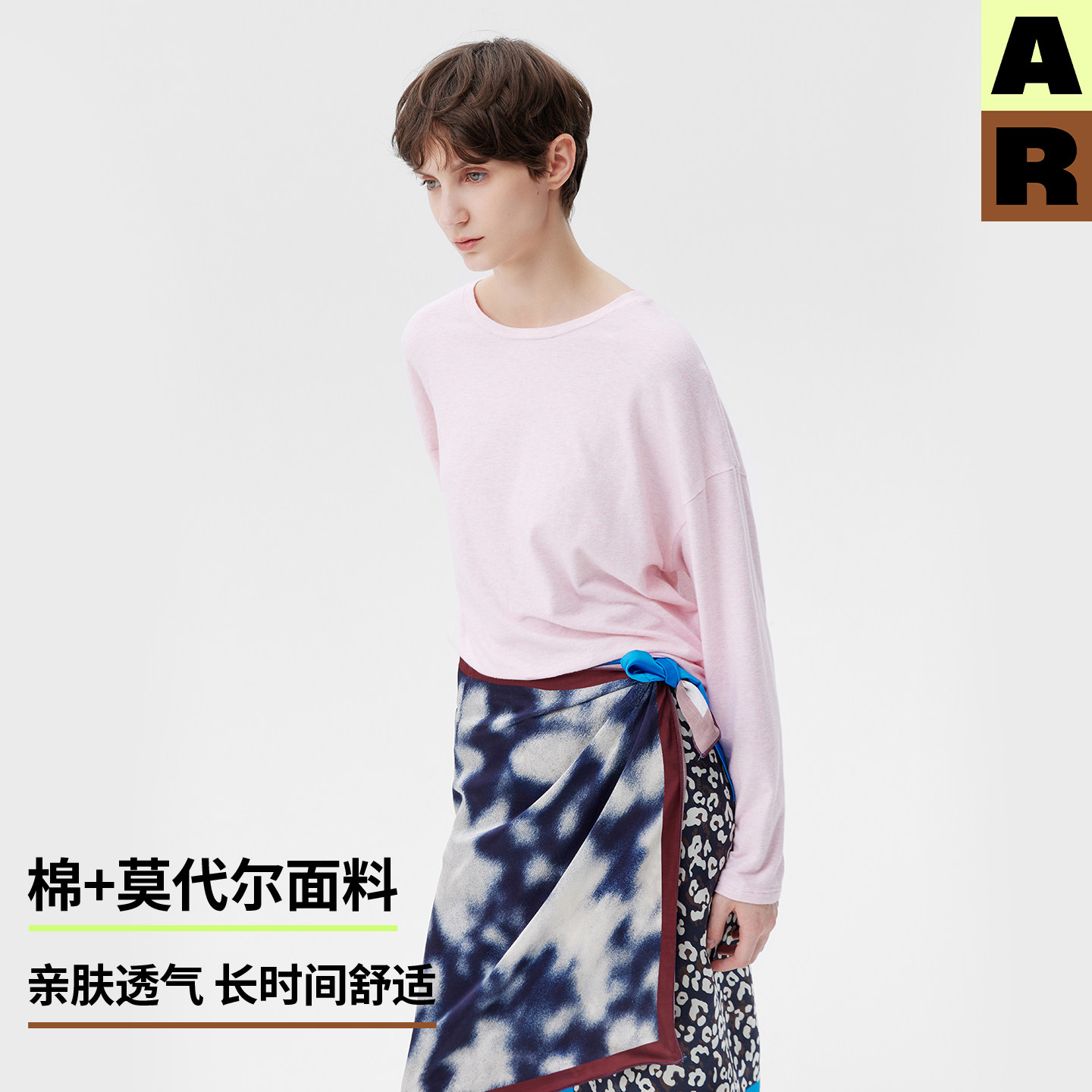 AR艺术家合作棉莫代尔圆领长袖 纯色T恤宽松慵懒上衣