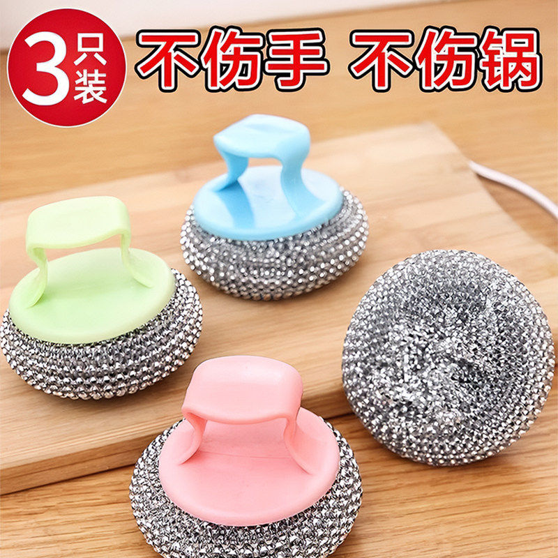 钢丝球大号家用清洁球厨房洗碗擦锅不锈钢不掉丝铁丝清洁刷手柄