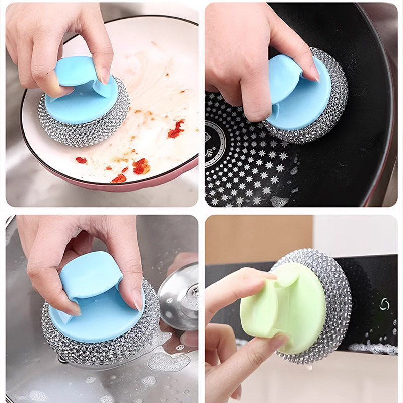 不伤锅清洁球手柄钢丝球带不脏手刷锅神器家用去油污刷子带把锅刷