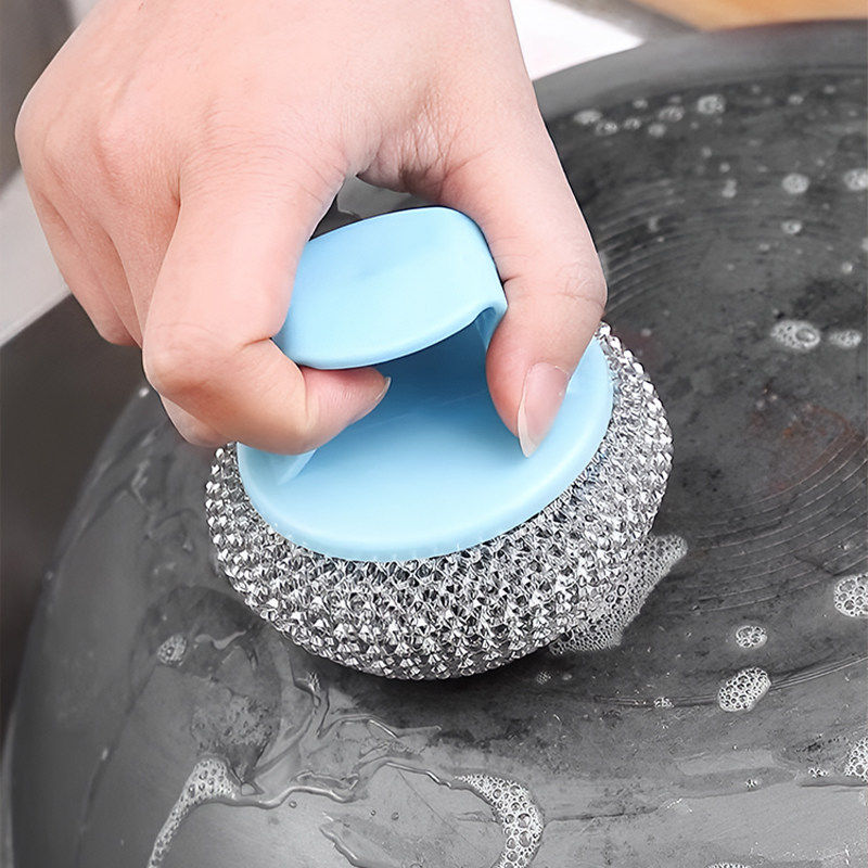 大号钢丝球不锈钢清洁球不掉丝家用铁丝球厨房刷锅带手柄洗碗神器