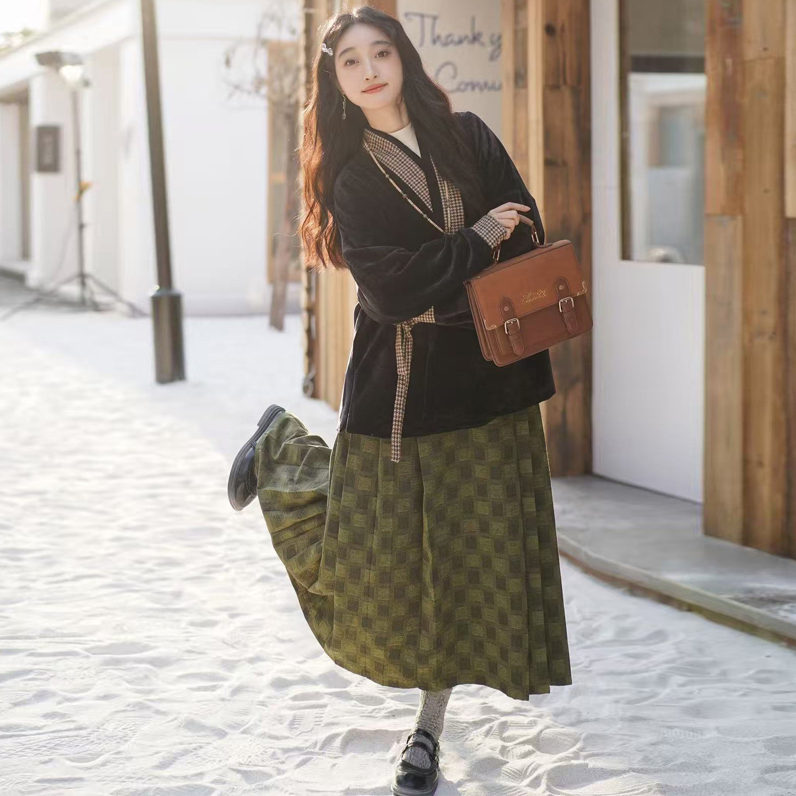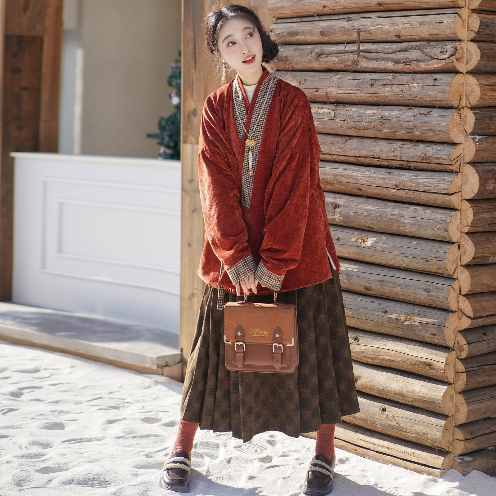 秋冬加厚日常百搭 马面裙套装 觅锦明制汉服女改良对襟开衫 弓袋袖