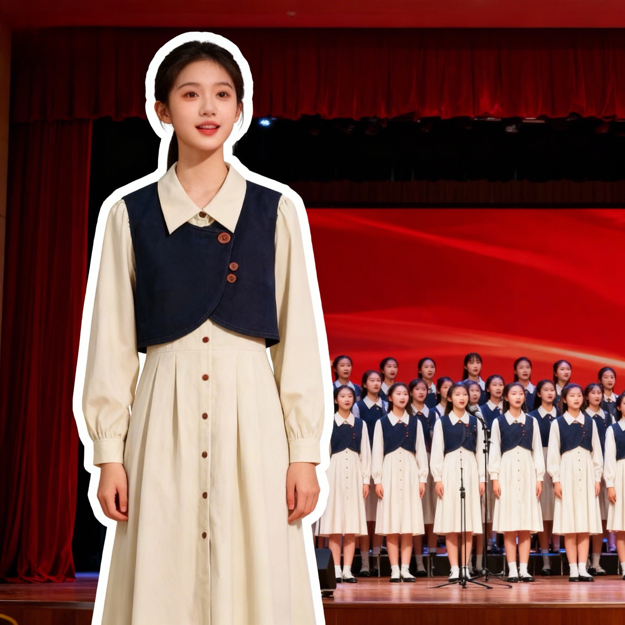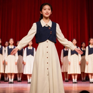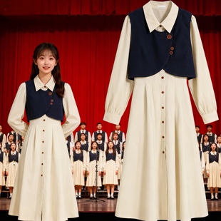 主持大合唱演出服女长裙中学生诗歌朗诵红歌比赛表演服装 指挥礼服