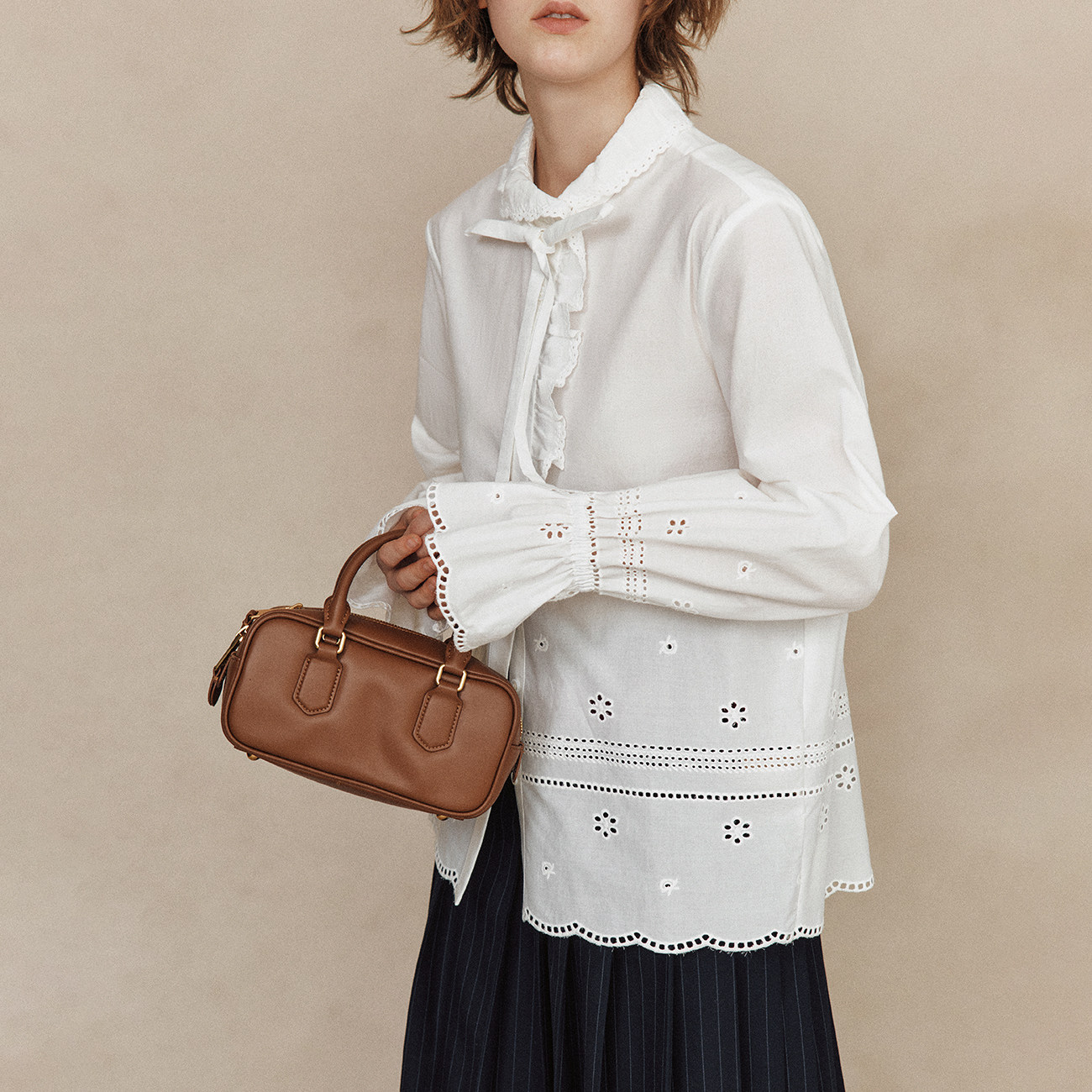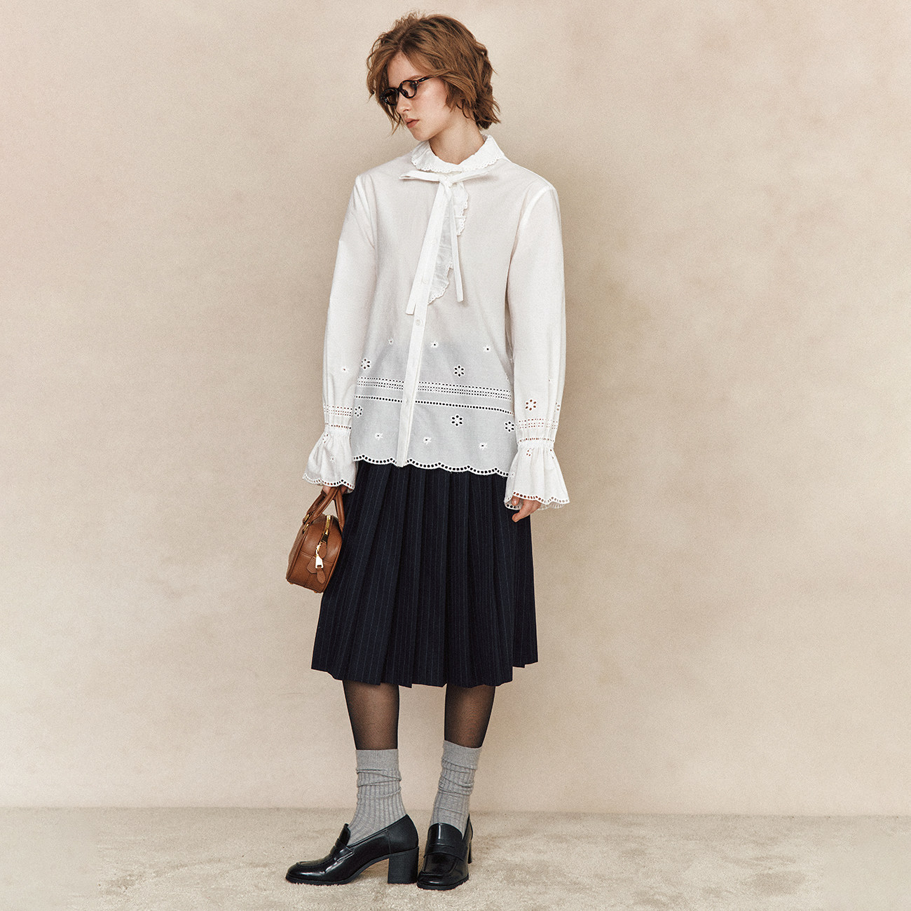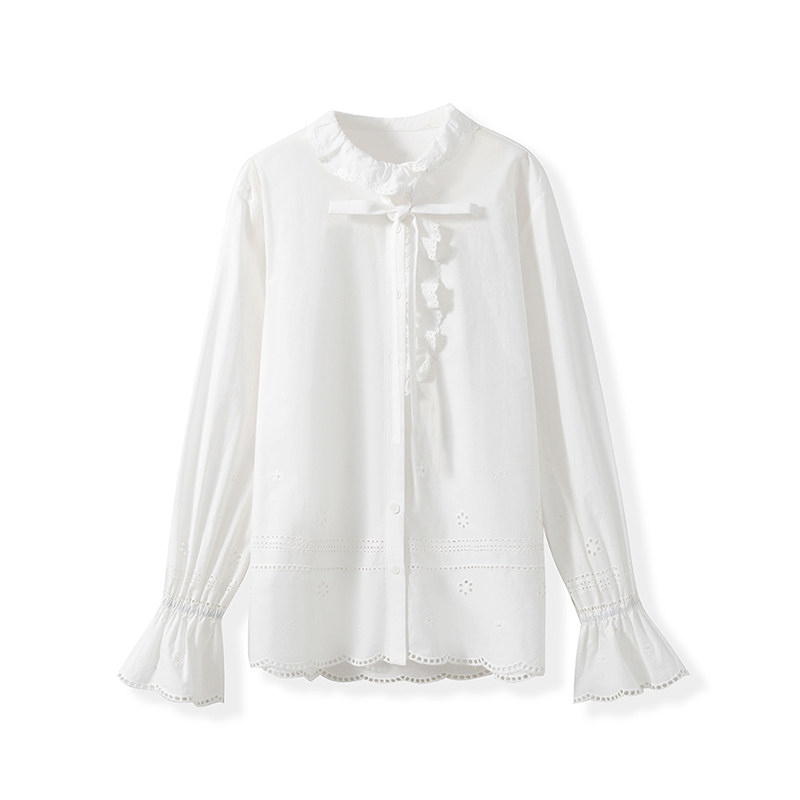 法式 1OO%高支精梳棉 浪漫蕾丝花边拼接雕孔绣花衬衫 月光鸣奏