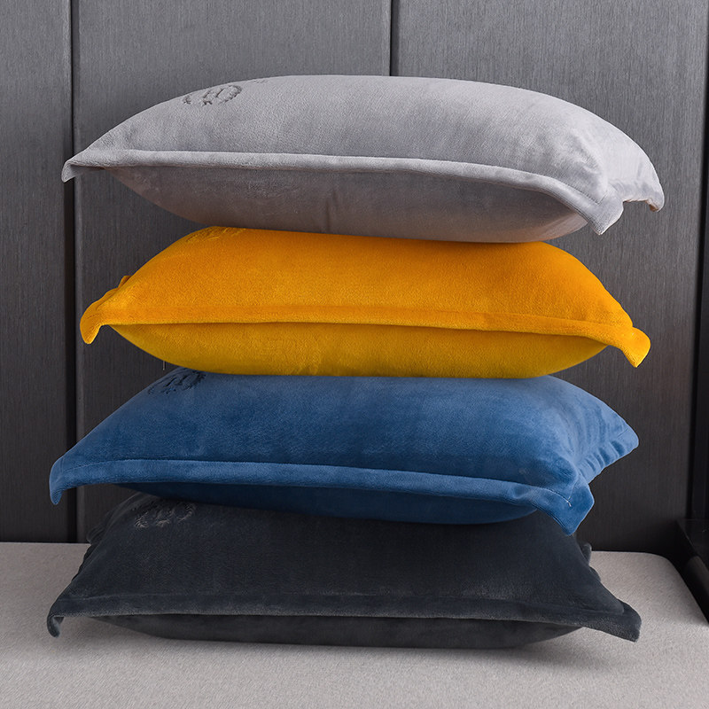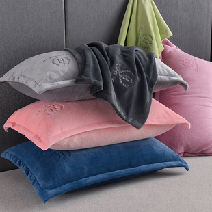 坏情绪走开|ins马卡龙纯色加厚牛奶绒单枕套48 74球球边枕袋一个