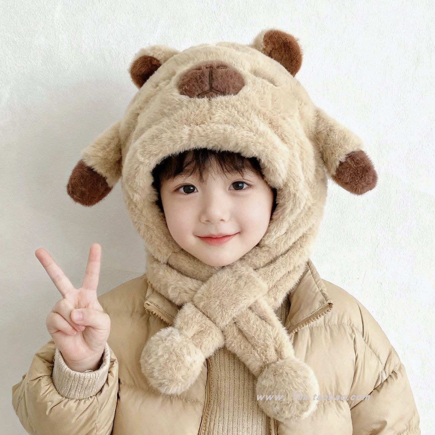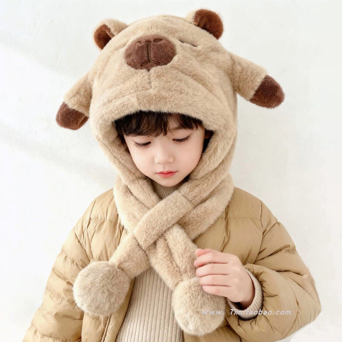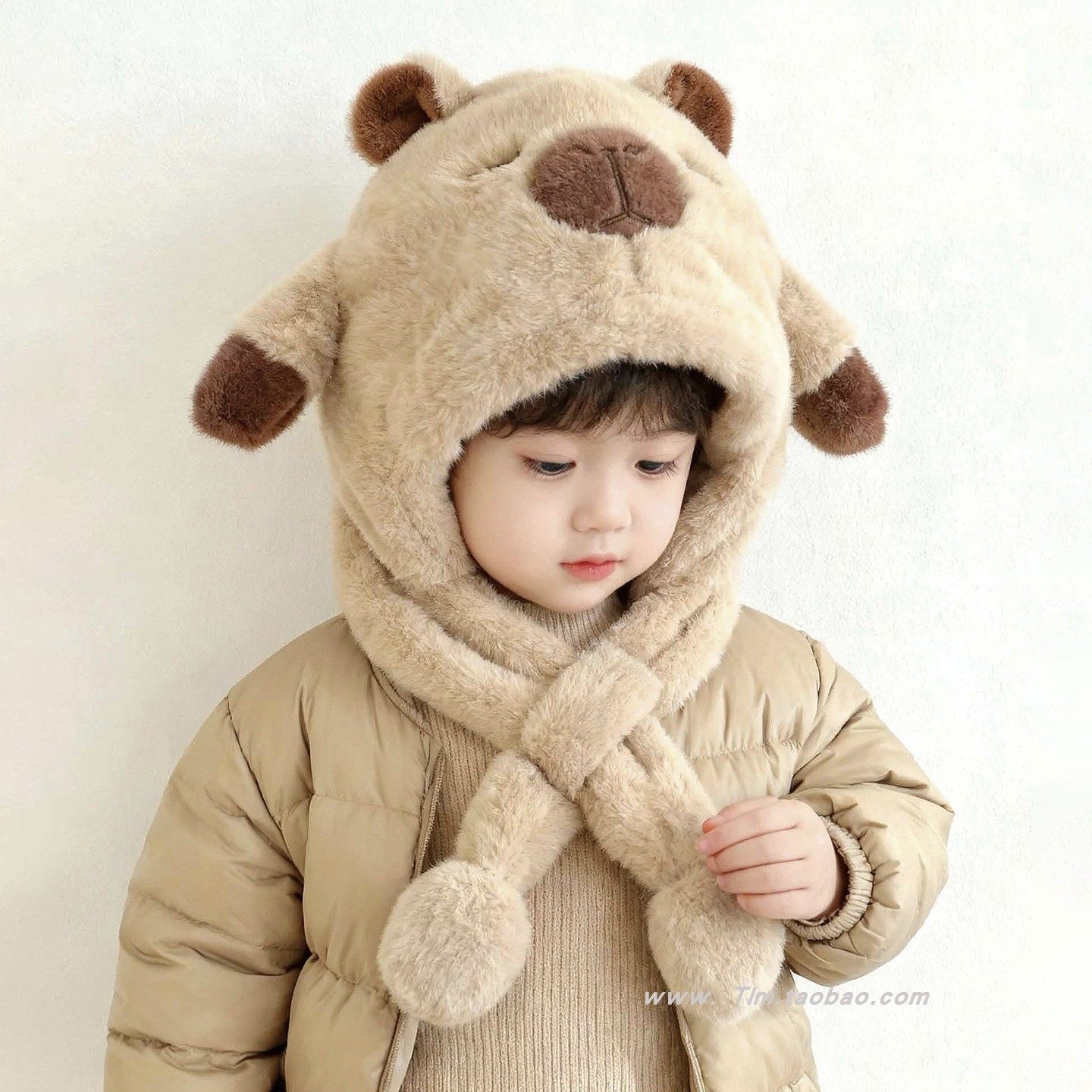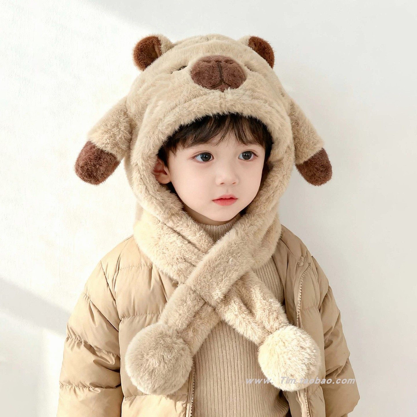 儿童帽子秋冬季 保暖加厚针织毛绒围巾两件套男婴女宝宝防风毛线帽