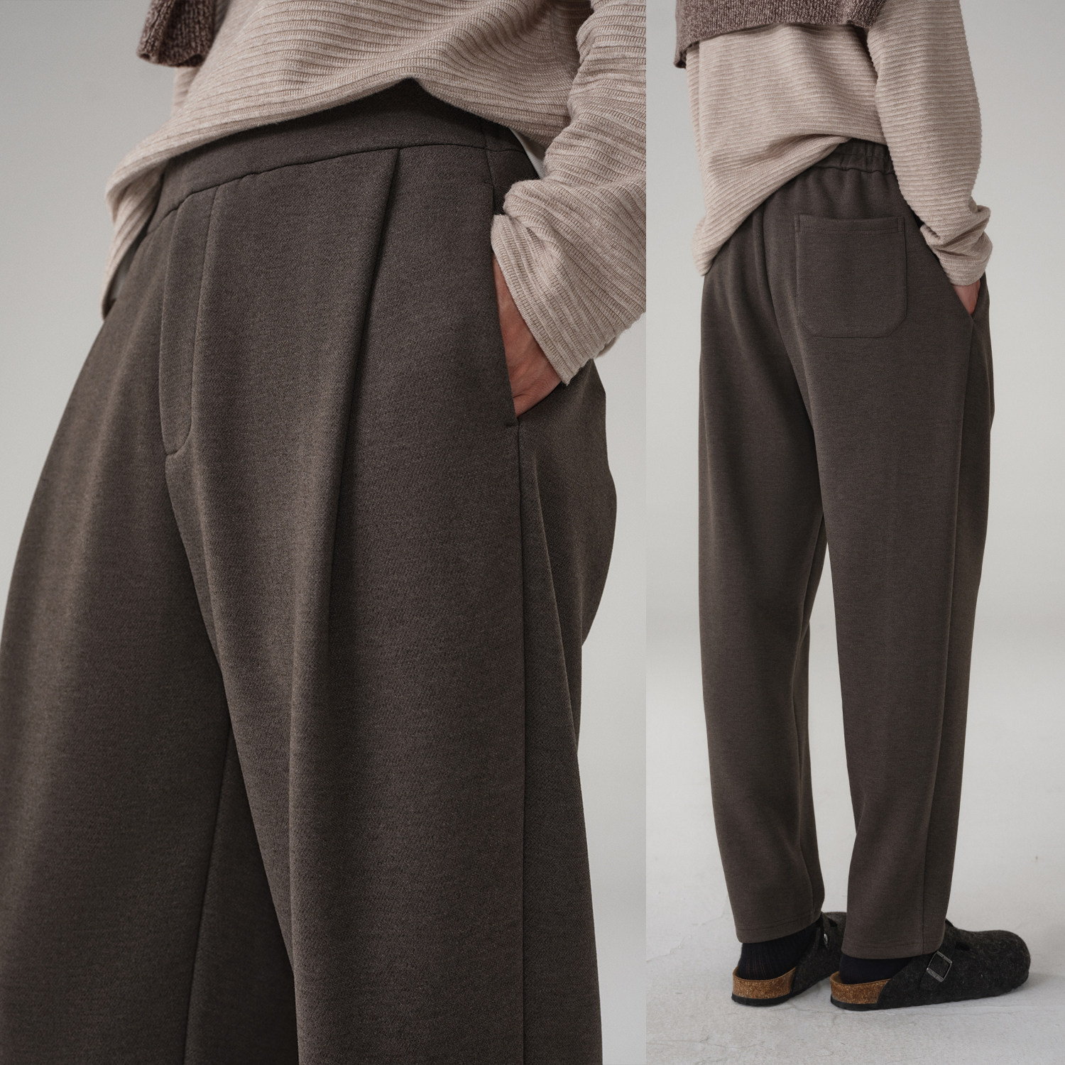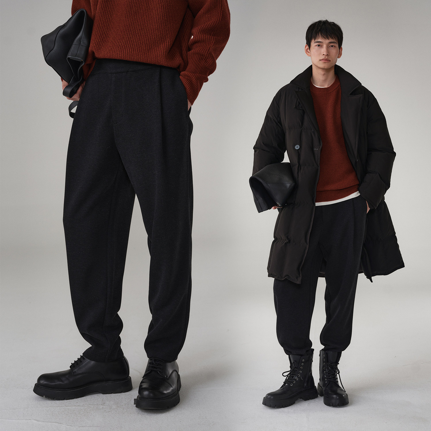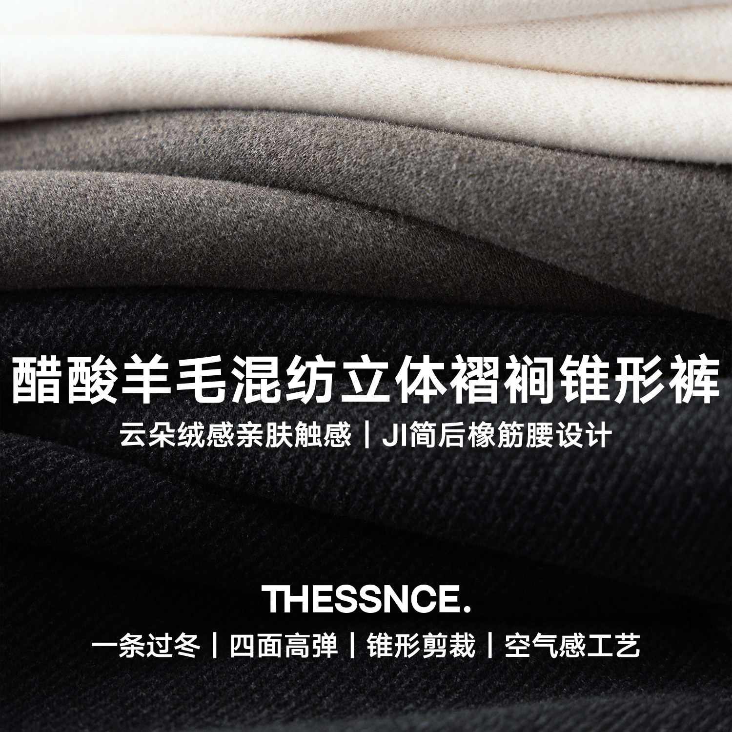秋冬 立体褶裥佰搭宽松锥形卫裤 臻选之品 云朵绒感醋酸羊毛混纺