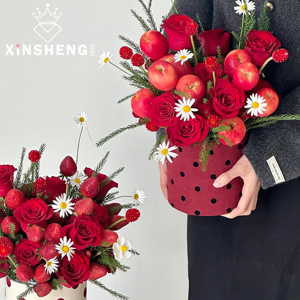 miu系波点圆桶 芯苼 鲜花束零食diy插花桶花艺资材 圣诞节新品