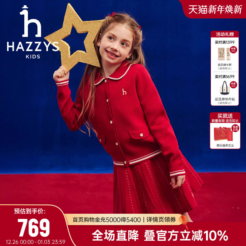新年款 新品 甜美针织套裙两件套 女童套裙2026春季 hazzys哈吉斯童装