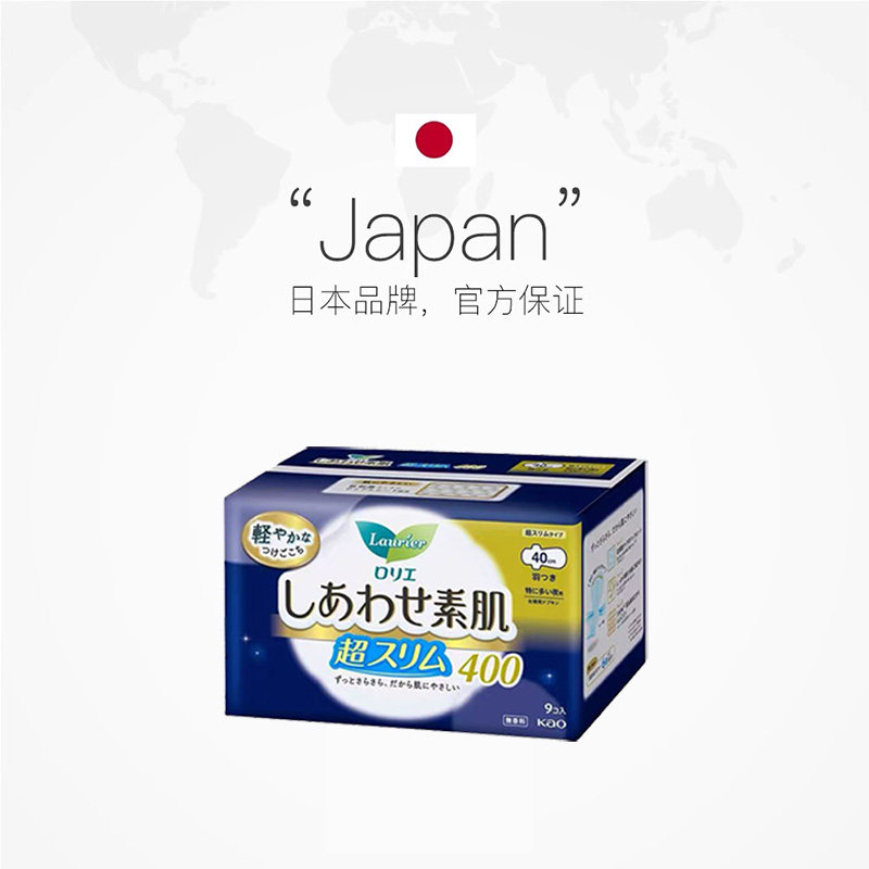 9片敏感肌轻薄护翼型 日本进口花王乐而雅夜用卫生巾40cm 自营