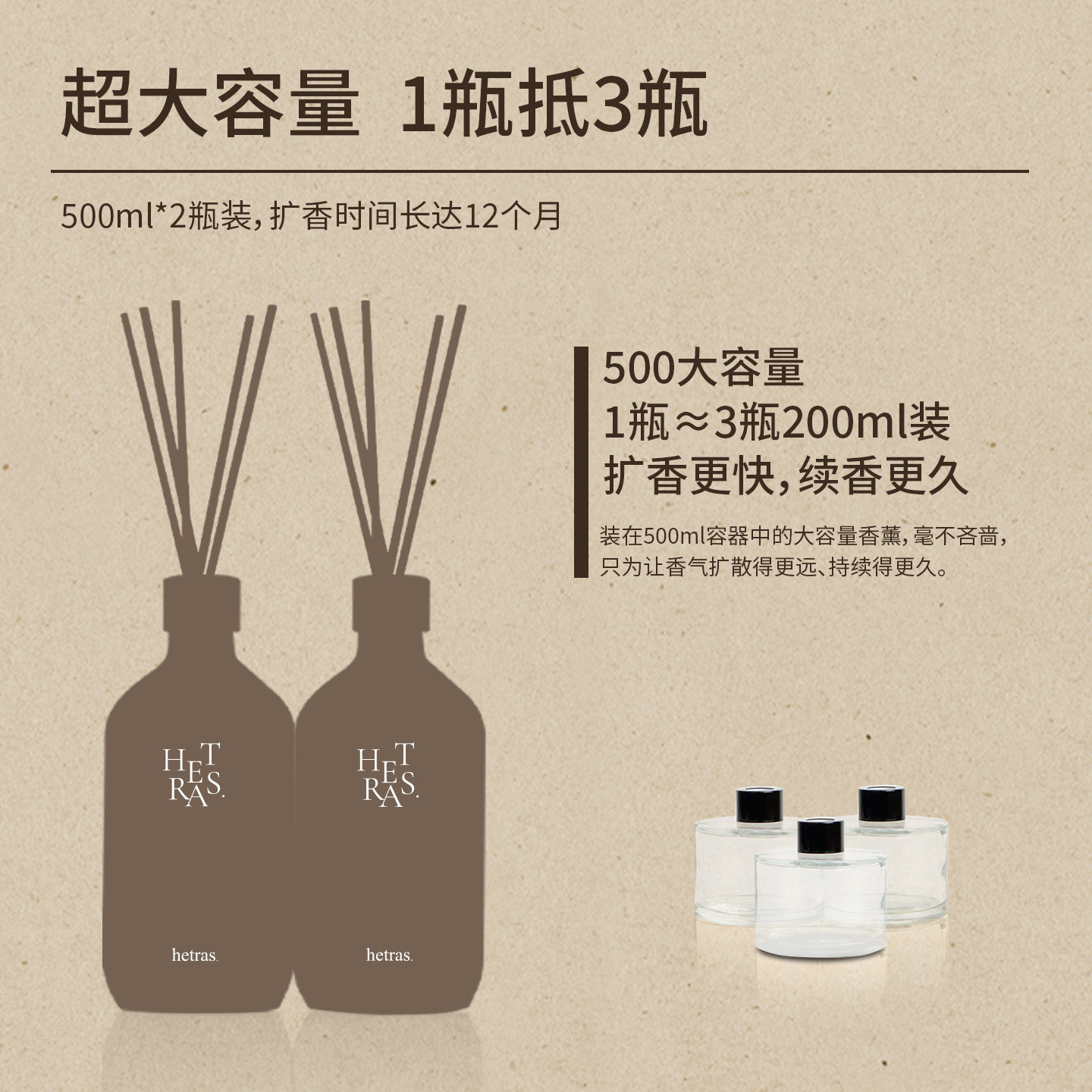 2瓶 hetras香薰持久留香室内无火香薰香水500ml 李佳琦直播间