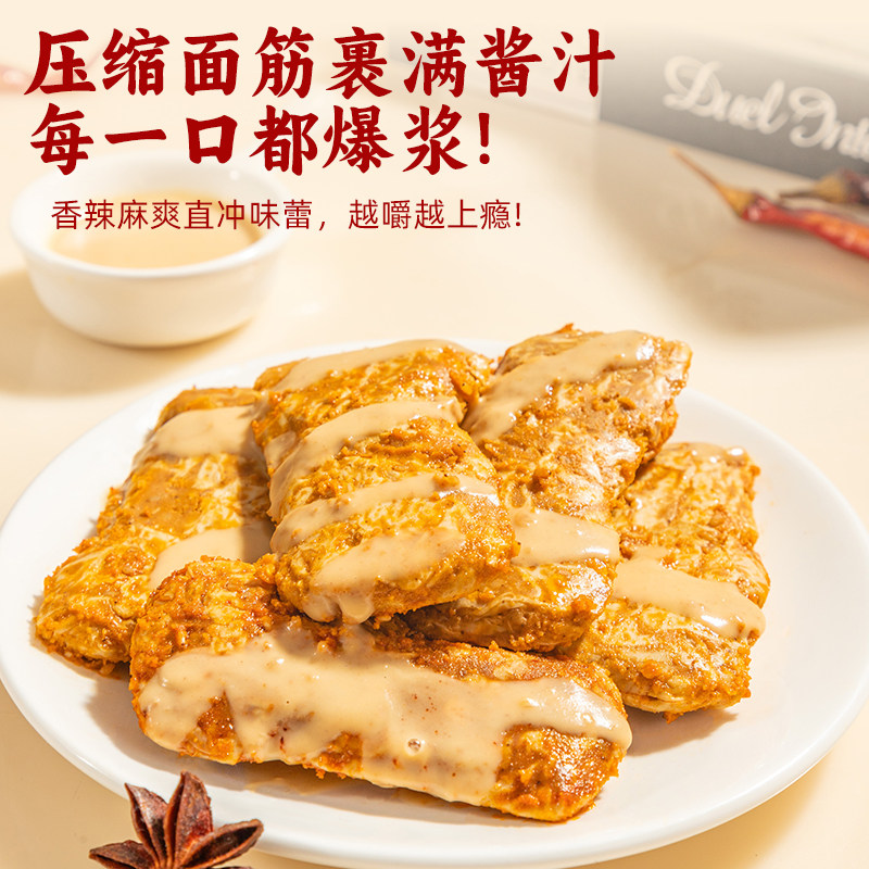豆多奇麻酱面筋卷香辣烧烤开袋即食休闲小零食老北京风味小吃辣条