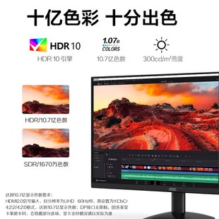 IPS 27英寸4K显示器广色域不闪HDR低蓝光超薄办公电脑 AOC U27B30