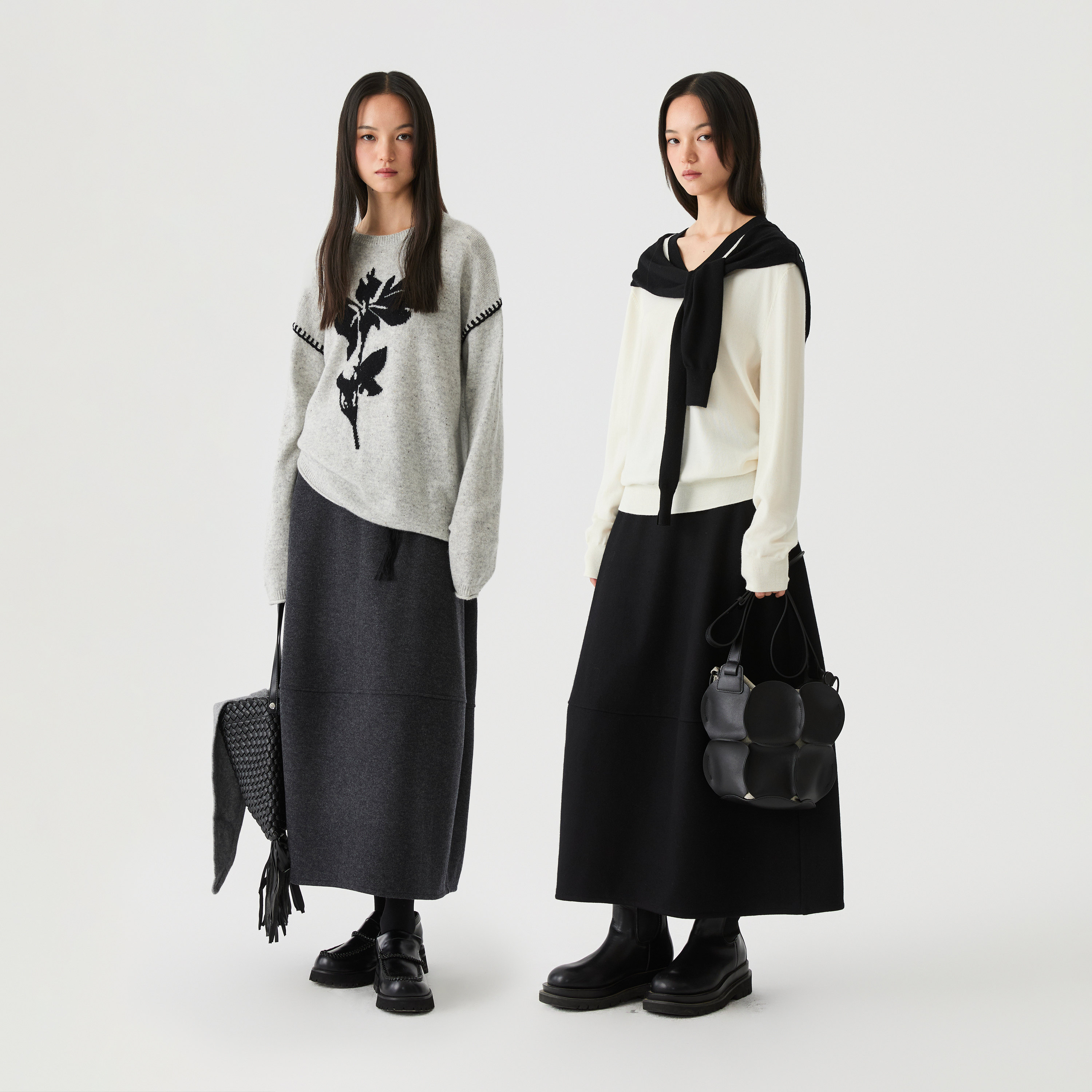 播简约经典 遮肉通勤裙子DDS4BD5102 百搭磨毛感长半裙女冬季