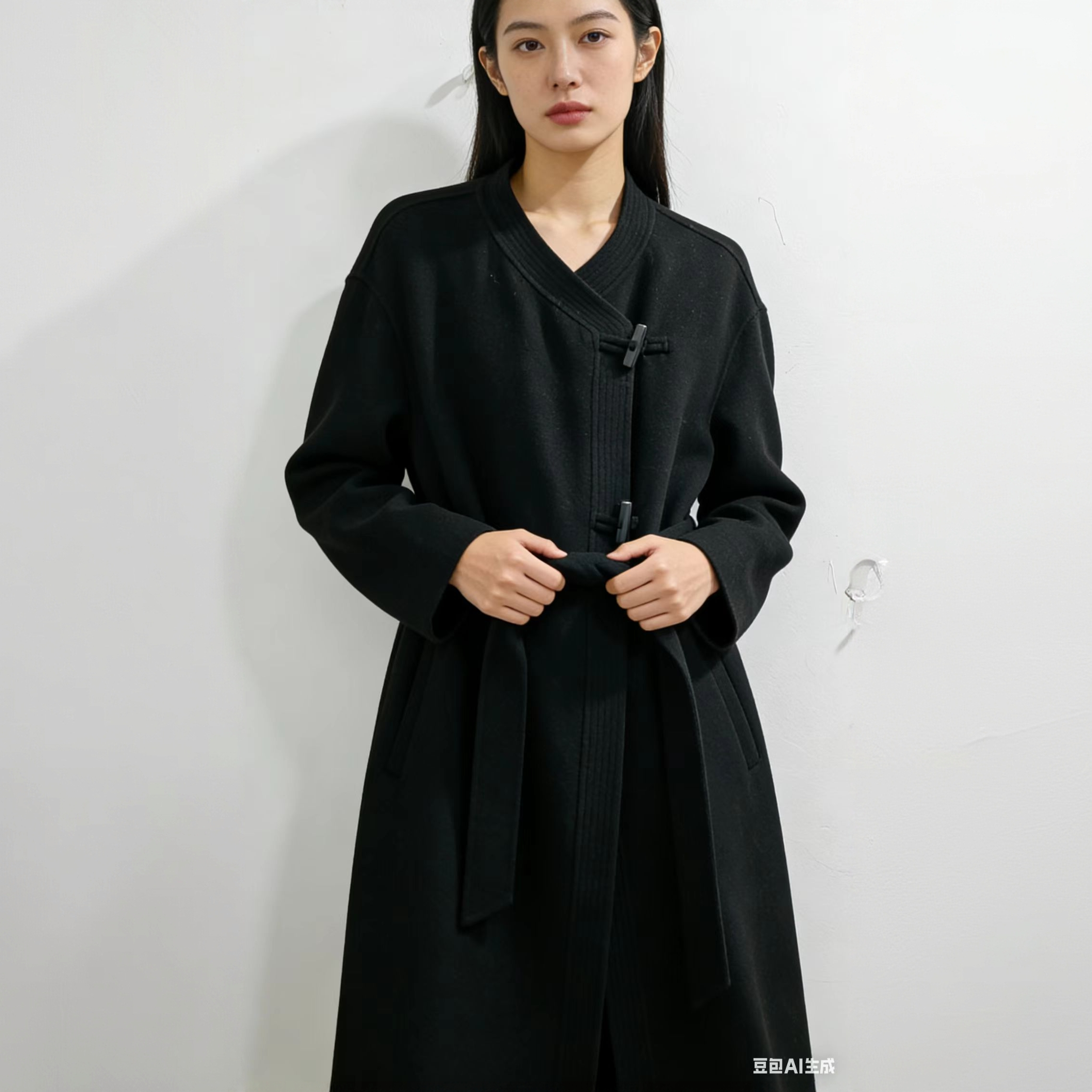 夹克翻领秋冬加厚外套 羊毛茧型双门襟毛呢中长款 Succinct 摩
