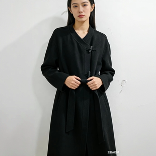 情侣带垫肩加厚风衣外套老钱风 双面羊毛呢子大衣男中长款 储格