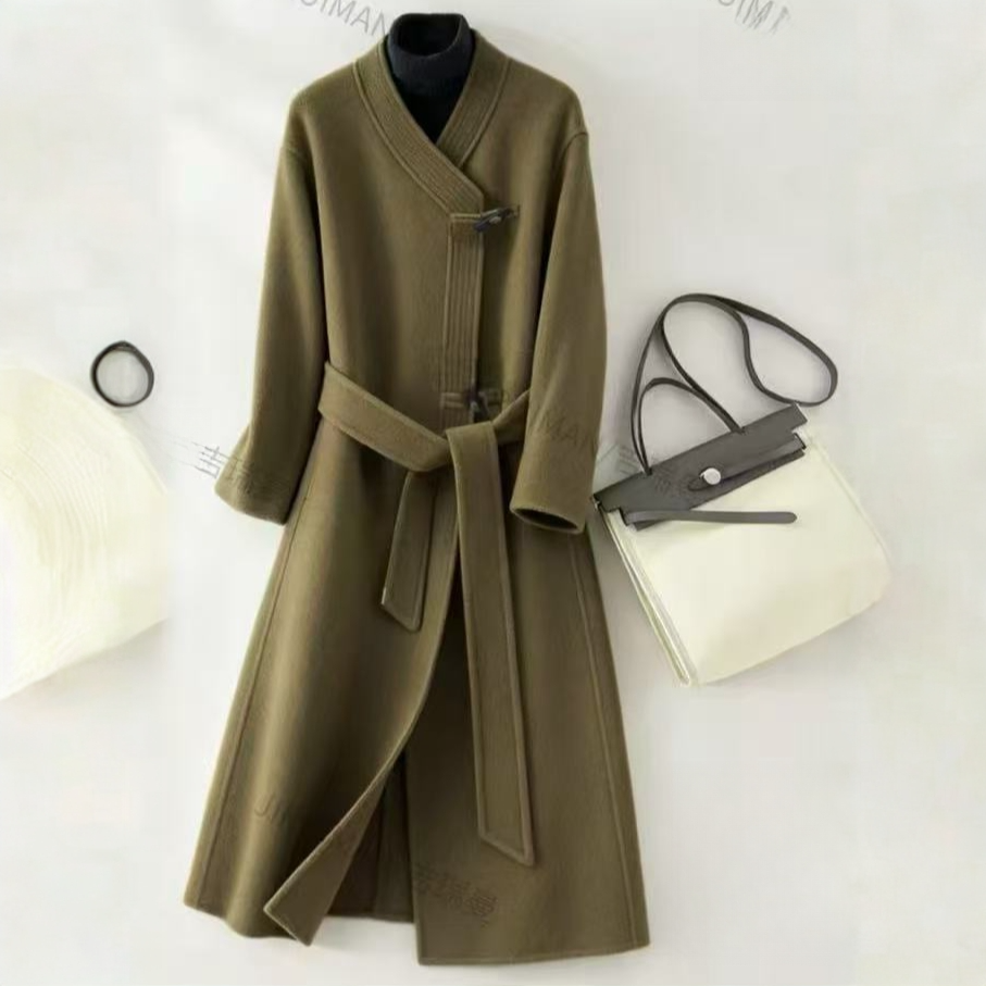 时尚 毛呢外套韩版 秋冬中长款 高级感驼色双面羊毛大衣男女同款