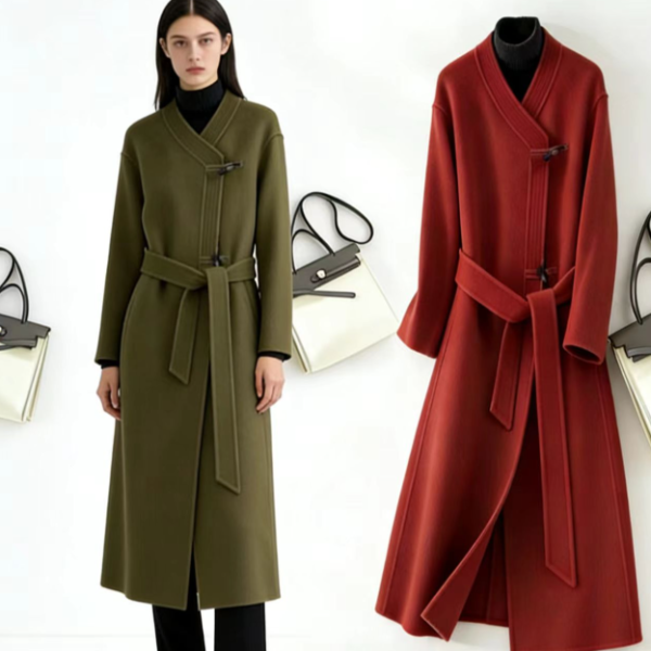 西装 过膝双面羊绒外套 领毛呢子风衣 中长款 纯羊毛双面呢大衣男士