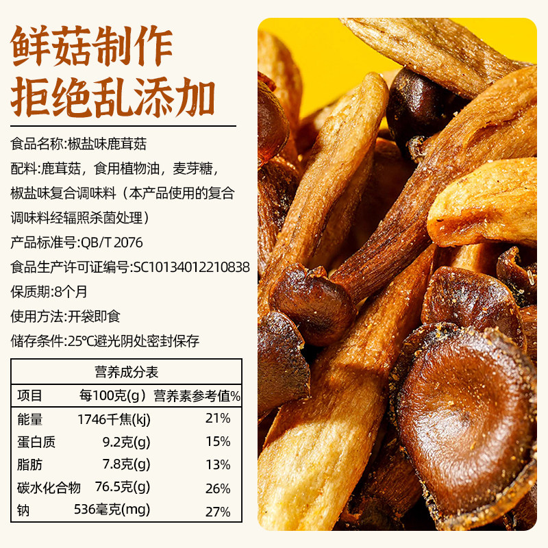 鹿茸菇脆椒盐黑松露非香油炸蘑菌菇干官方旗舰店零食休闲小吃食品