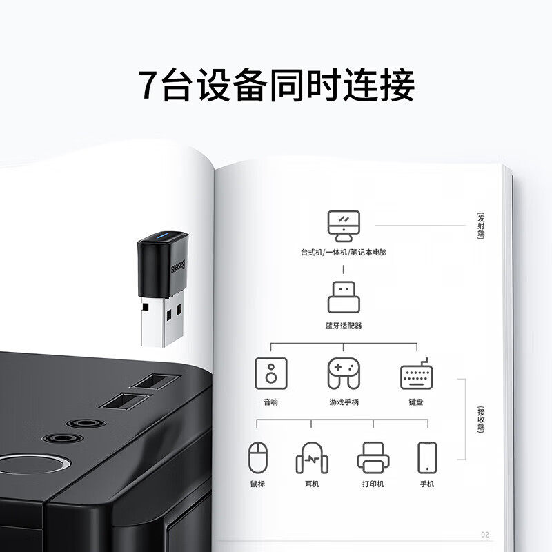 倍思 机笔记本接手机无线蓝牙免驱动5.3发射音响鼠标键盘 USB蓝牙适配器5.1发射器蓝牙音频接收器耳机配件台式