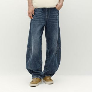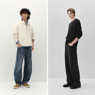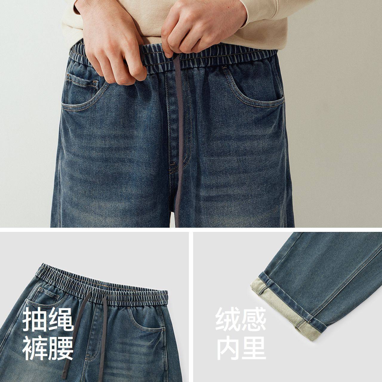 宽松直筒加绒休闲阔腿裤 NG真维斯复古牛仔裤 美式 秋冬2025新款 男士