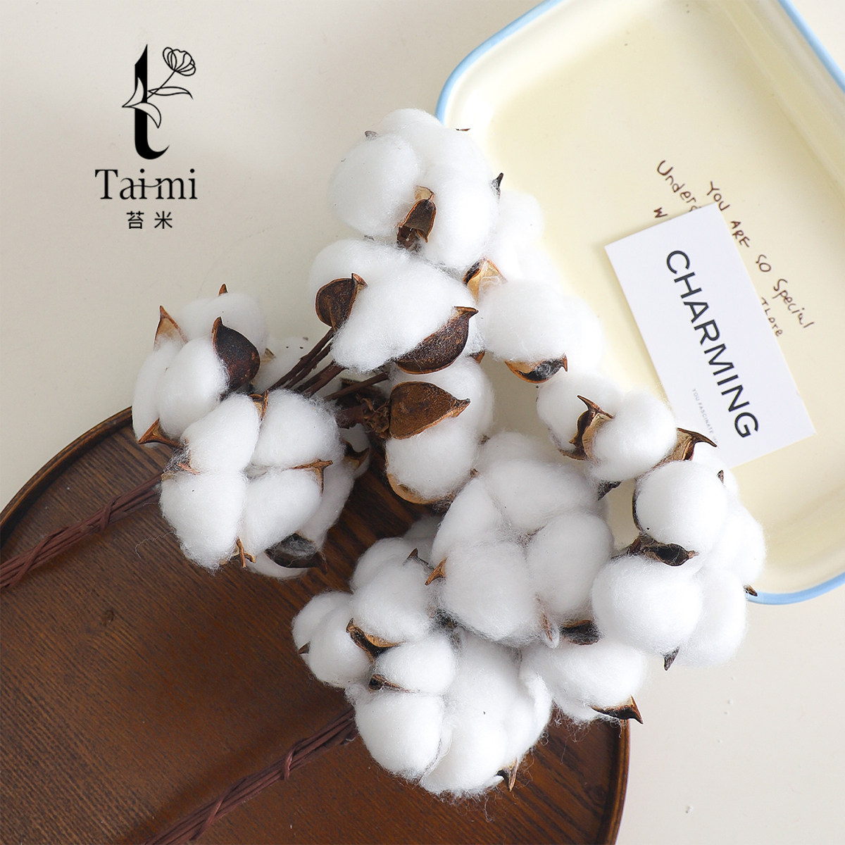 苔米 饰材料 圣诞节天然棉花带杆干花花艺搭配鲜花束diy配件花店装