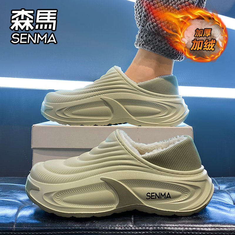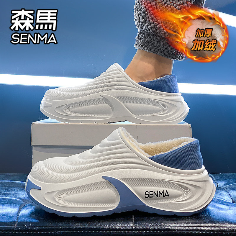 外穿防水防滑包跟拖鞋 森马棉拖鞋 加绒加厚保暖棉鞋 冬季 男2025新款