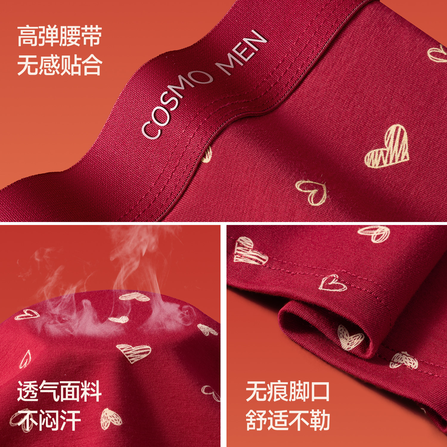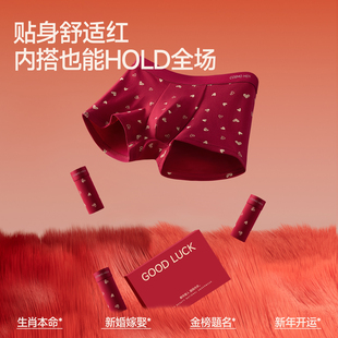 男士 马年平角短裤 红色四角裤 新款 头 头大码 都市丽人纯棉本命年内裤