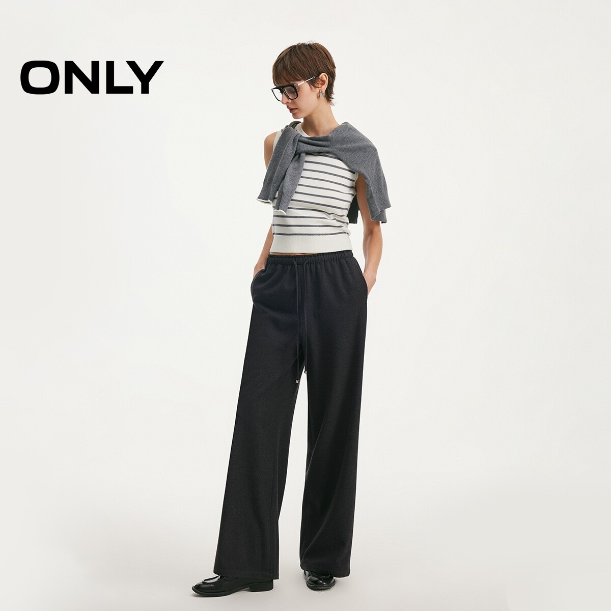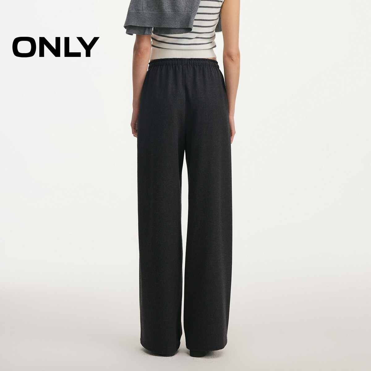 女 松紧抽绳腰宽松剪裁细腻软糯垂坠感毛感休闲裤 ONLY2026春季 新款