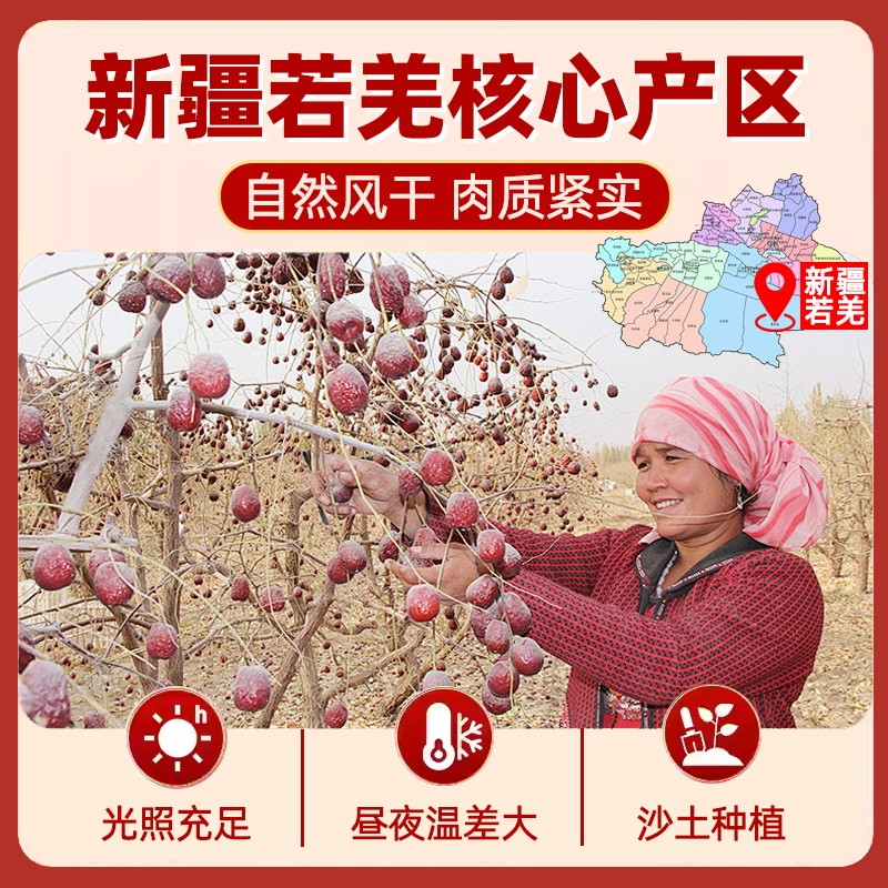 25年新枣5斤装 新疆特产若羌灰枣特级红枣吊干枣子原生态孕妇零食