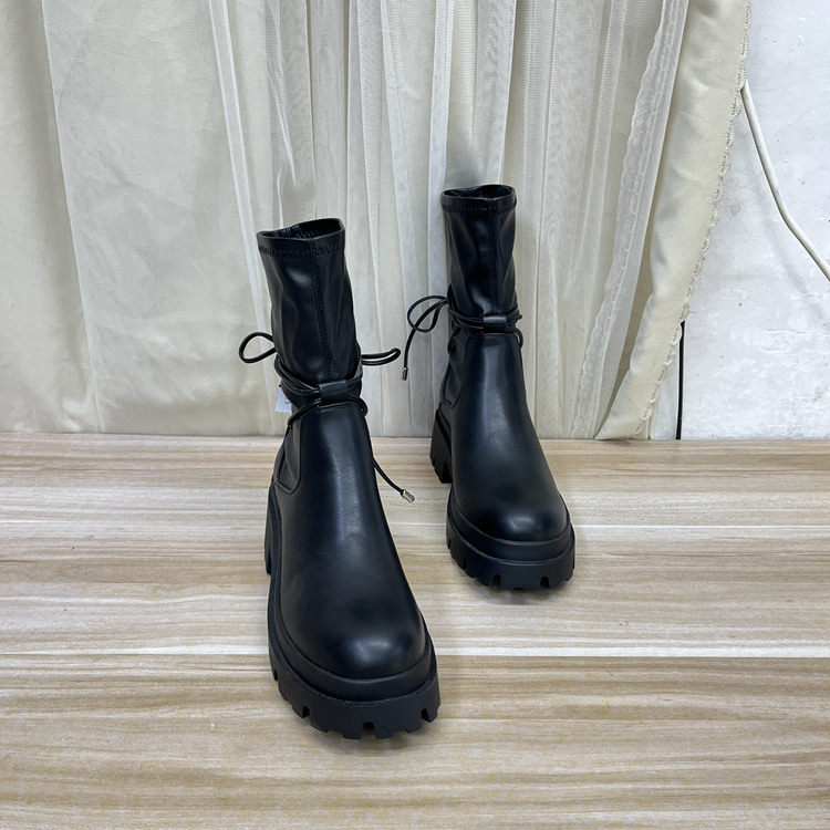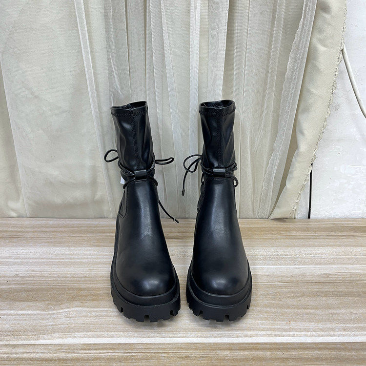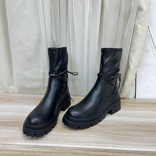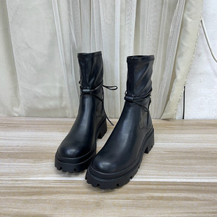 靴超软羊皮切尔西靴B7E1DDD5 瘦瘦短靴加绒时装 百丽女靴冬季 新款